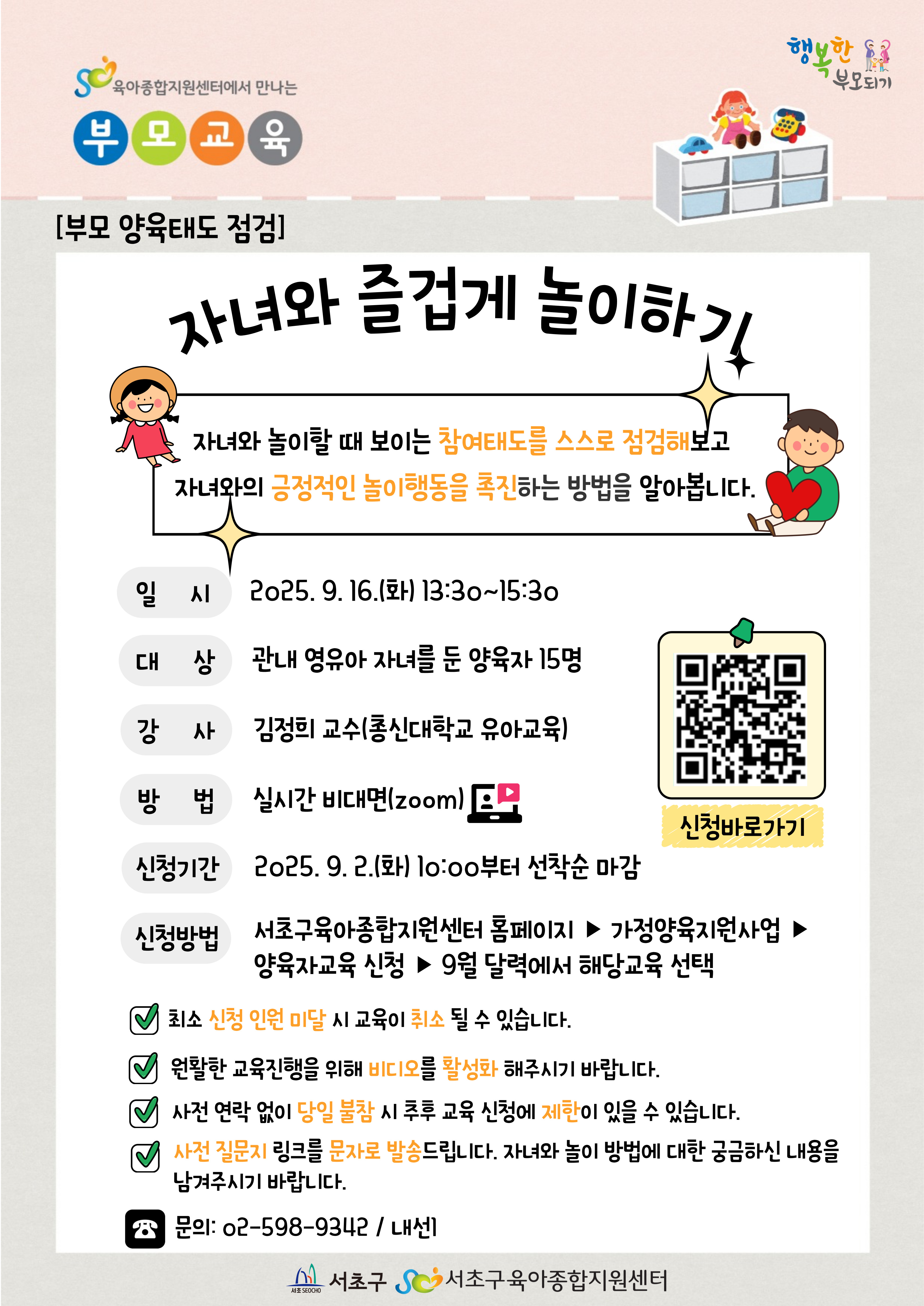 - 교육 전일에 신청자의 휴대폰 번호로 ZOOM 접속링크가 발송되오니 미수신된 경우 센터로 연락바랍니다.