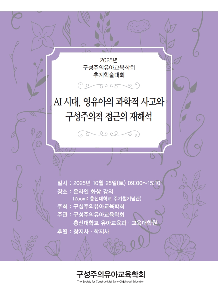 [가정양육] [구성주의유아교육학회 추계학술대회] 「AI시대, 영유아의 과학적 사고와 구성주의적 접근의 재해석」 안내