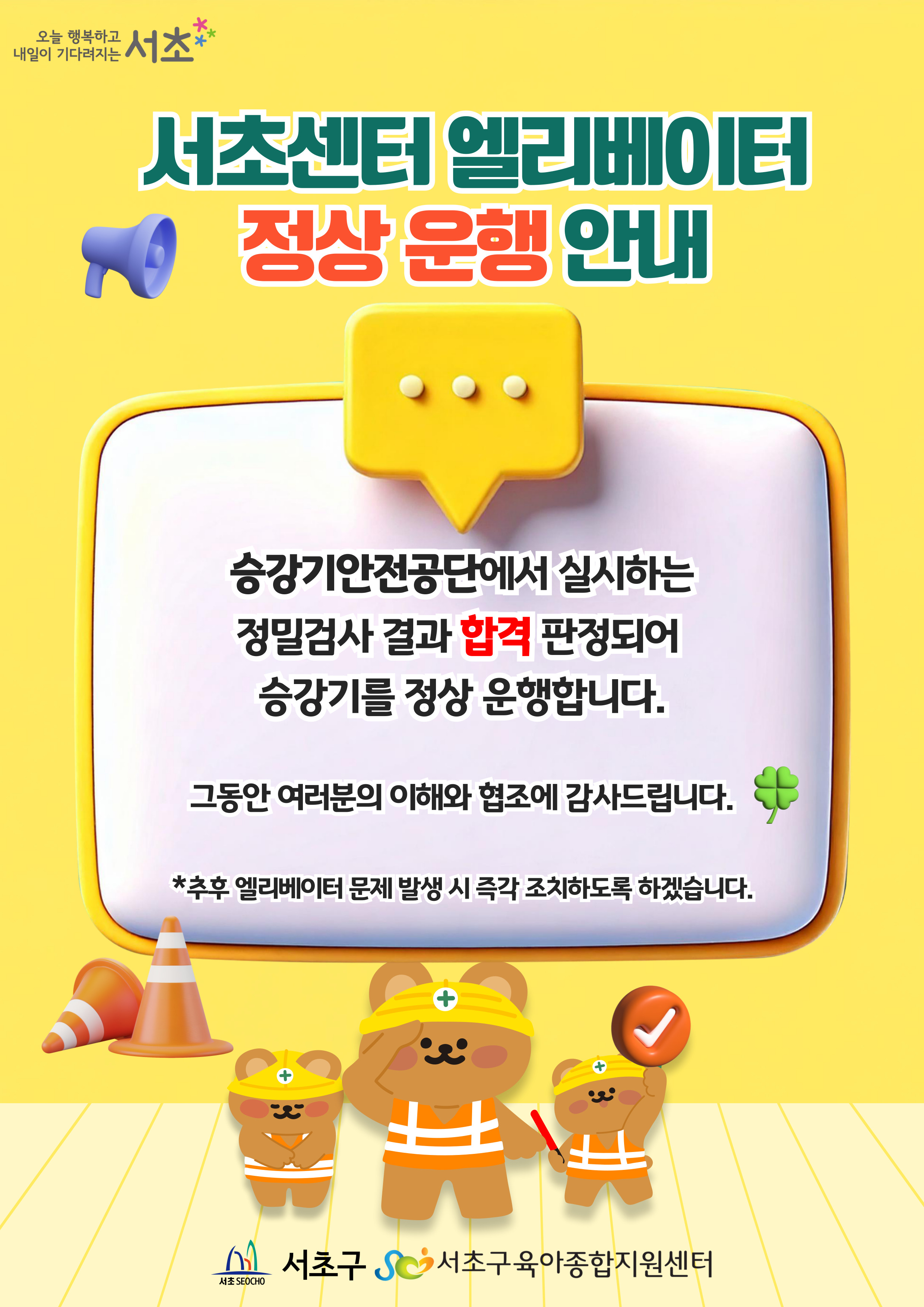 [어린이집] [서초구육아종합지원센터] 서초센터 승강기 정상 운행 안내