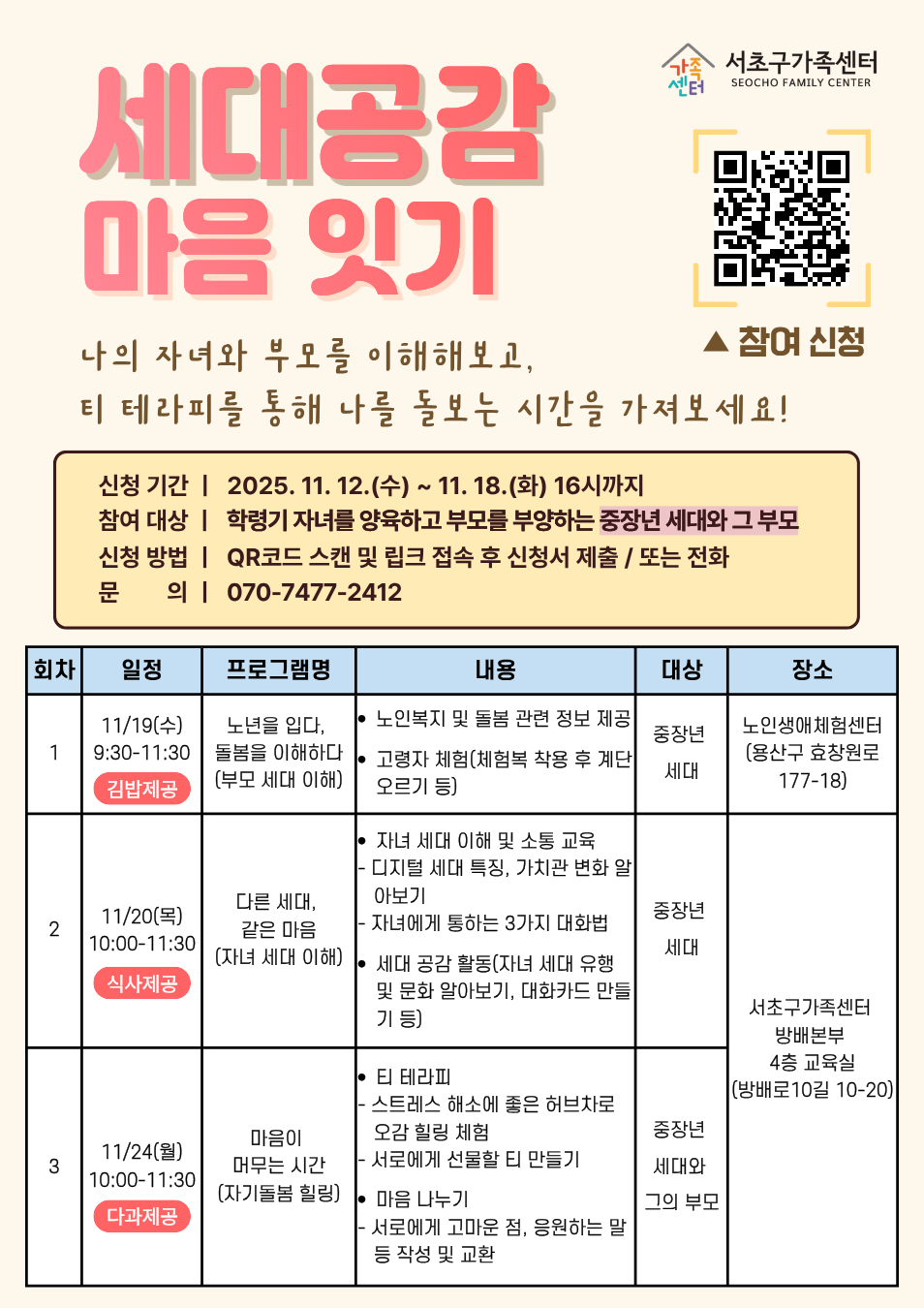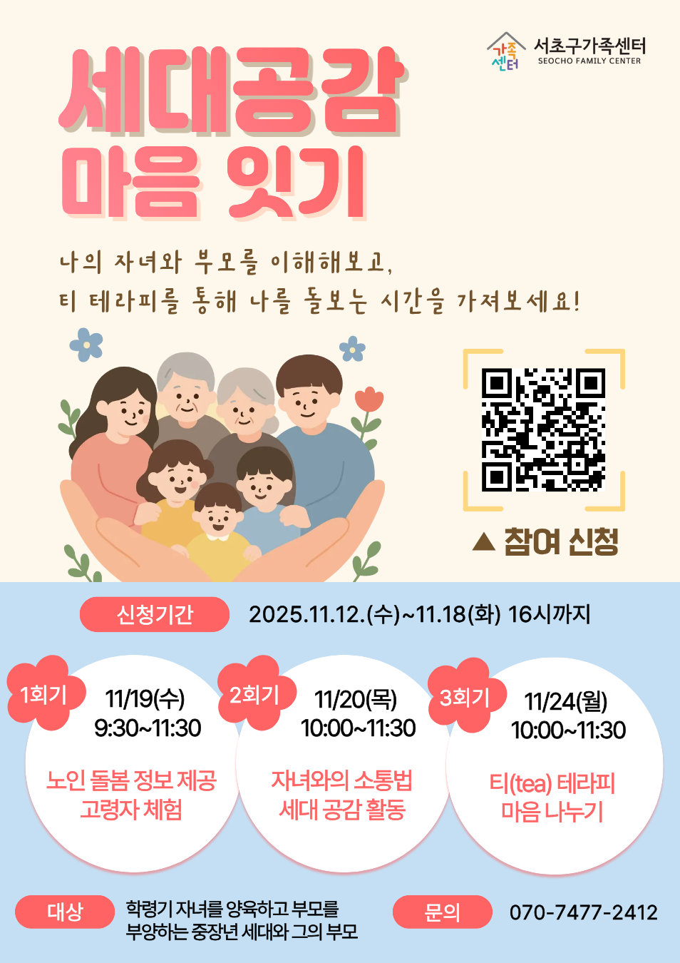 [가정양육] [서초구 가족센터] 세대 공감 프로그램 「세대공감 마음 잇기」 안내