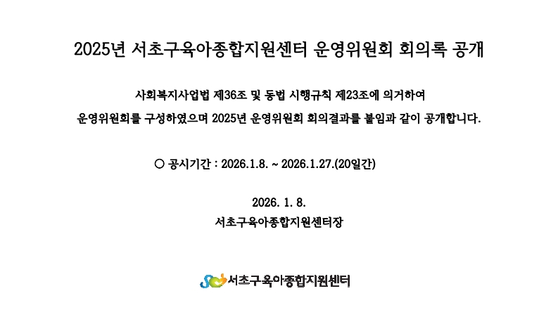 [가정양육] 2025년 서초구육아종합지원센터 운영위원회 회의록 공개