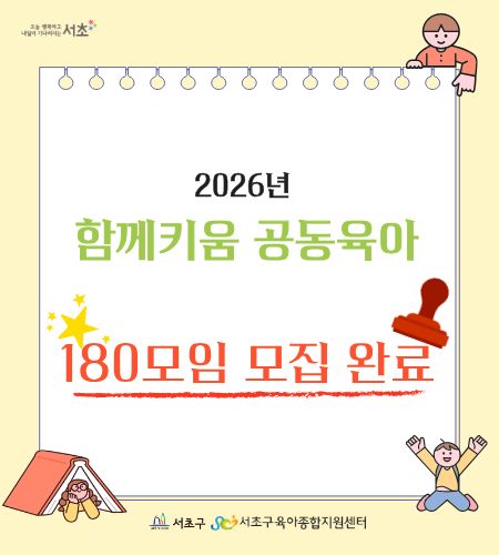 2026년 함께키움 공동육아의 참여할 180모임 모집이 완료되었습니다.