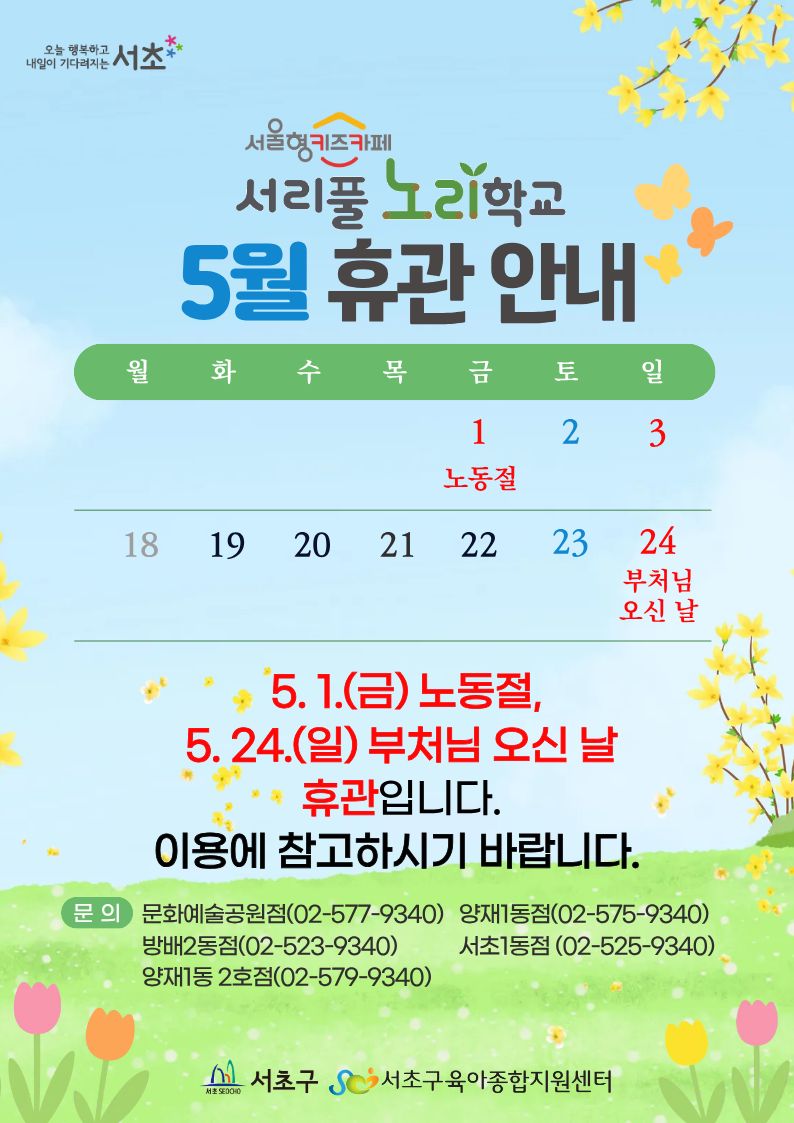 [가정양육] [서리풀노리학교] 5월 휴관일 안내