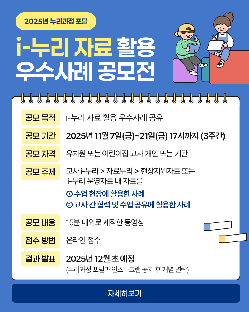[어린이집] [육아정책연구소] 「2025년 누리과정 포털 i-누리 자료 활용 우수사례」 공모전 안내