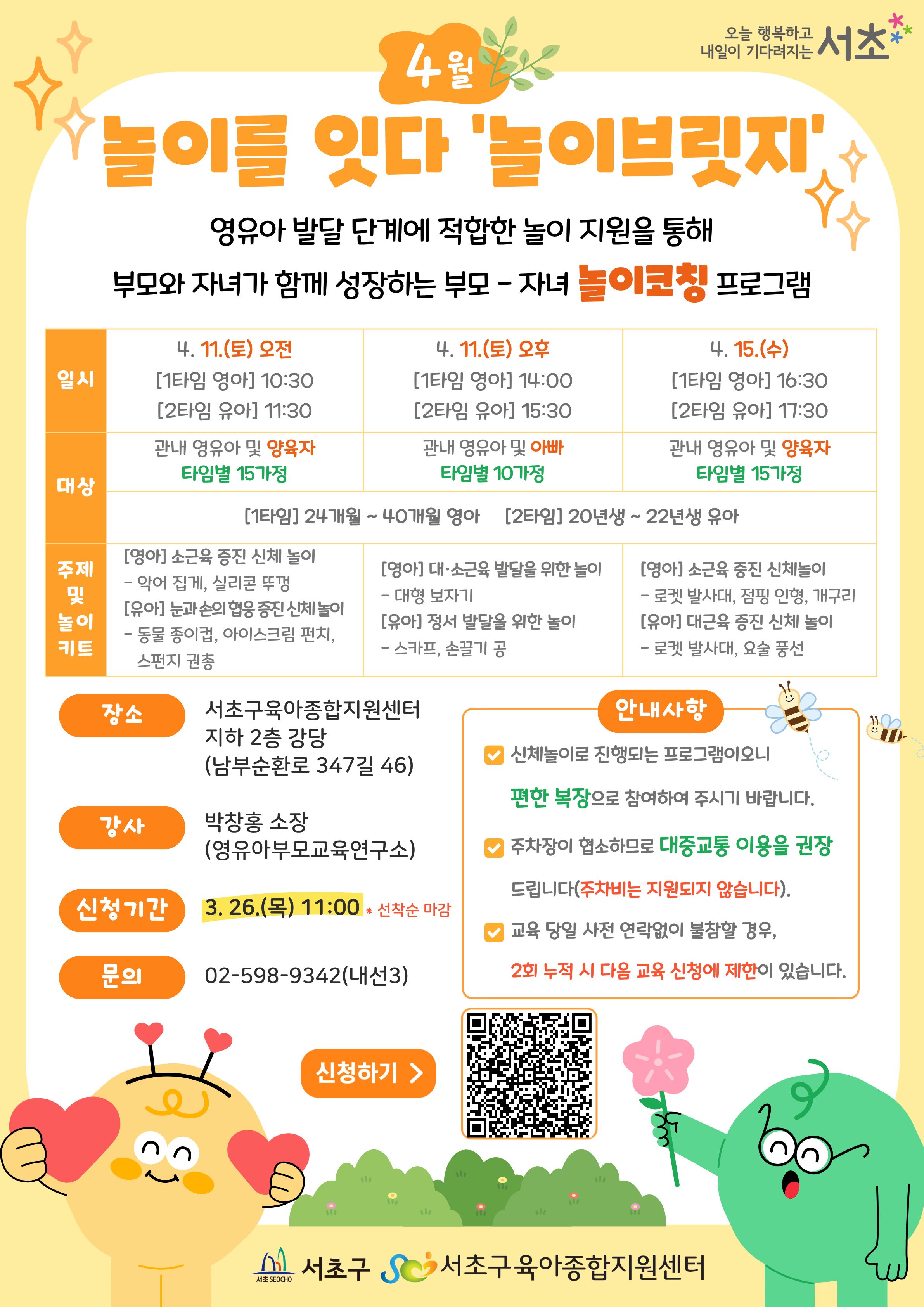 [가정양육] [부모-자녀 프로그램 '놀이브릿지'] 4월 일정 안내