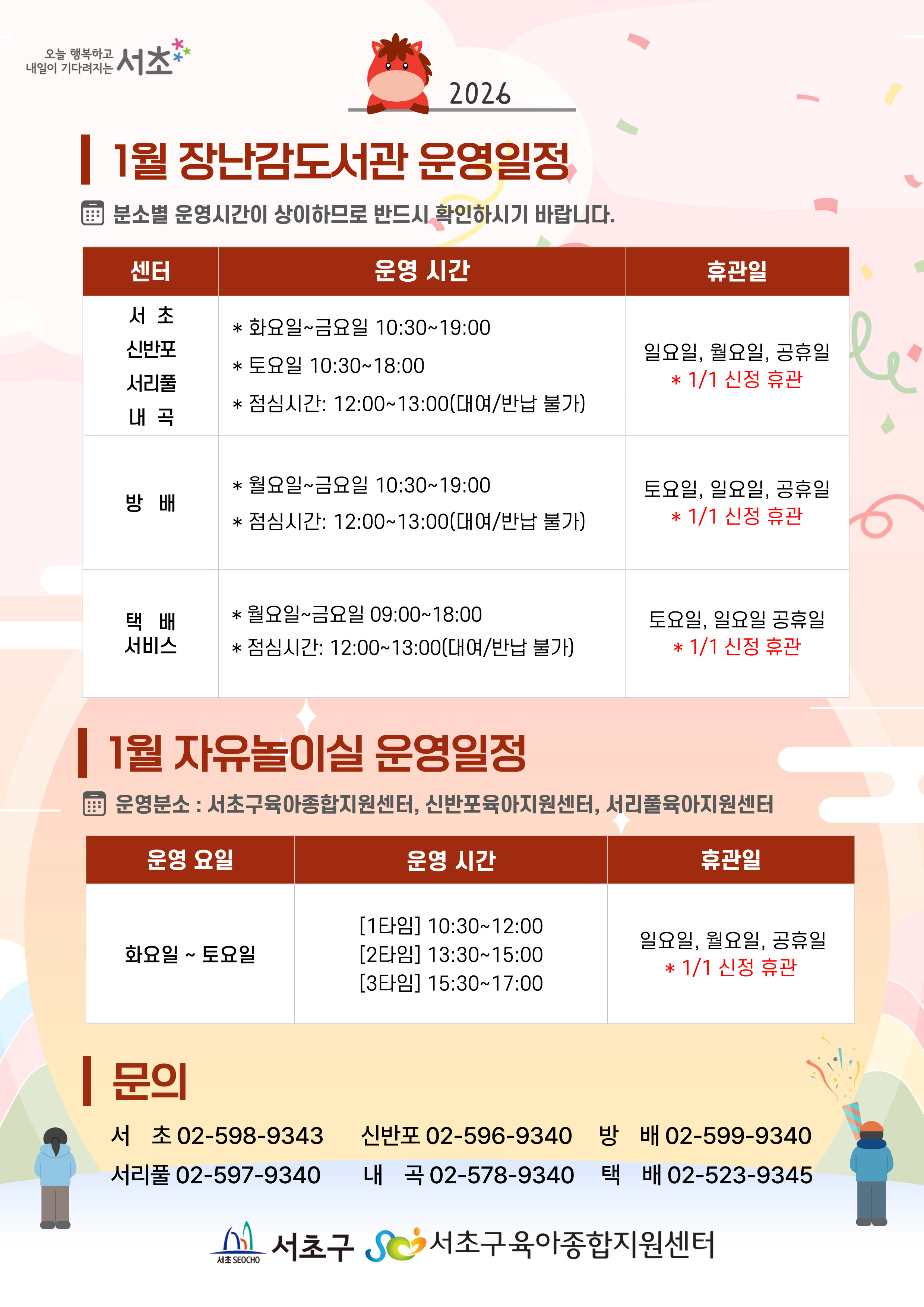 [가정양육] [장난감도서관] 2026년 1월 운영일정 안내
