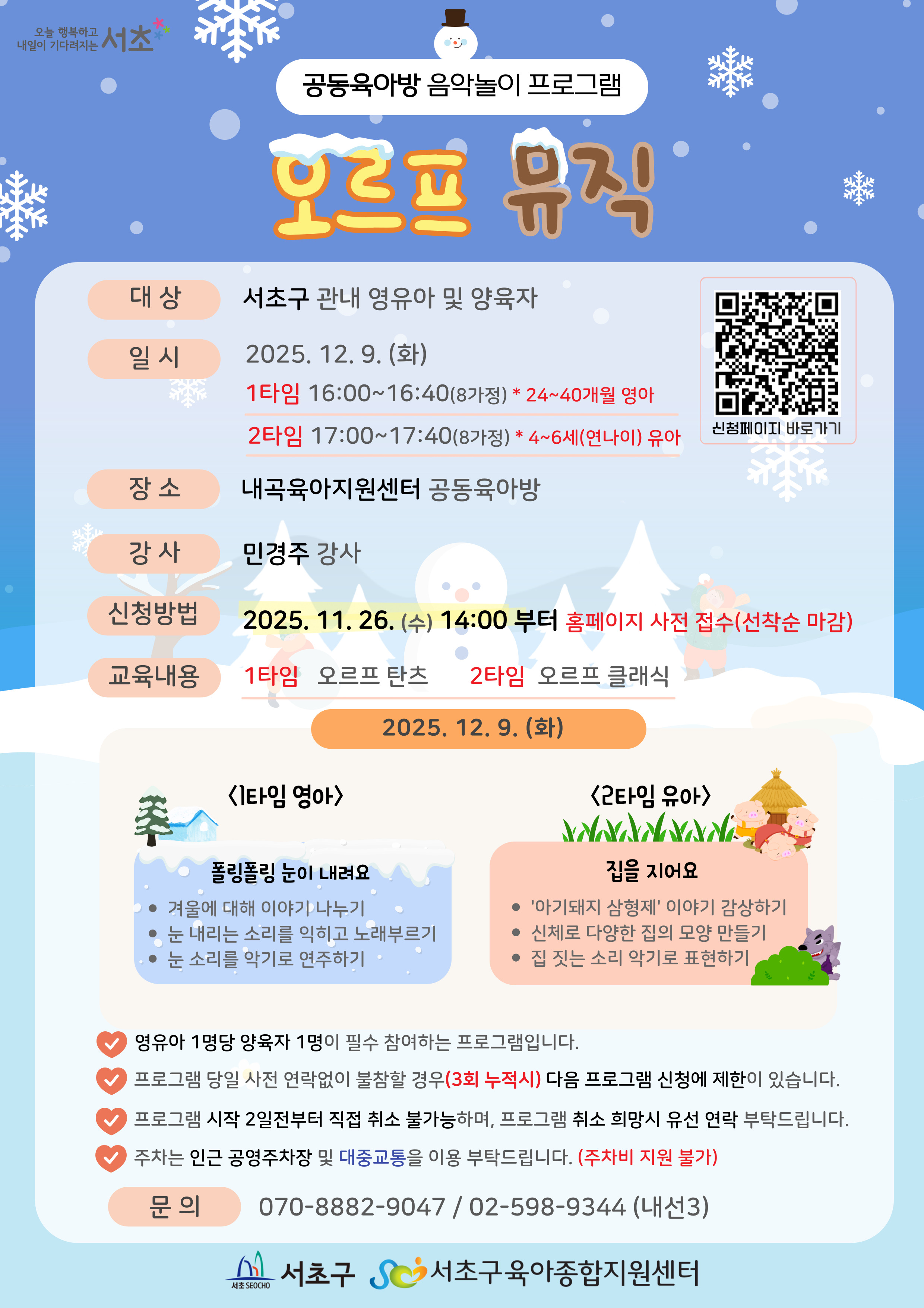 서초구육아종합지원센터 공동육아방 '12월 음악놀이 프로그램' 안내입니다.
