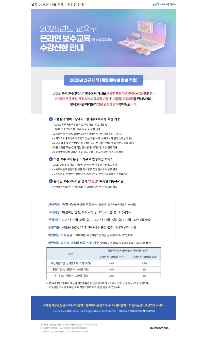 [어린이집] [삼성e-보수교육캠퍼스] 2025년도 12월 개강 수강신청 안내