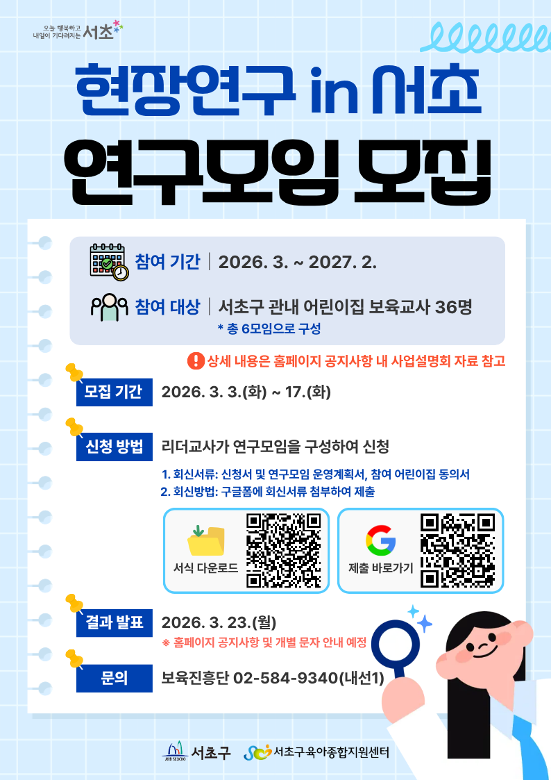 [어린이집] [현장연구 in 서초] 2026년 연구모임 모집 안내
