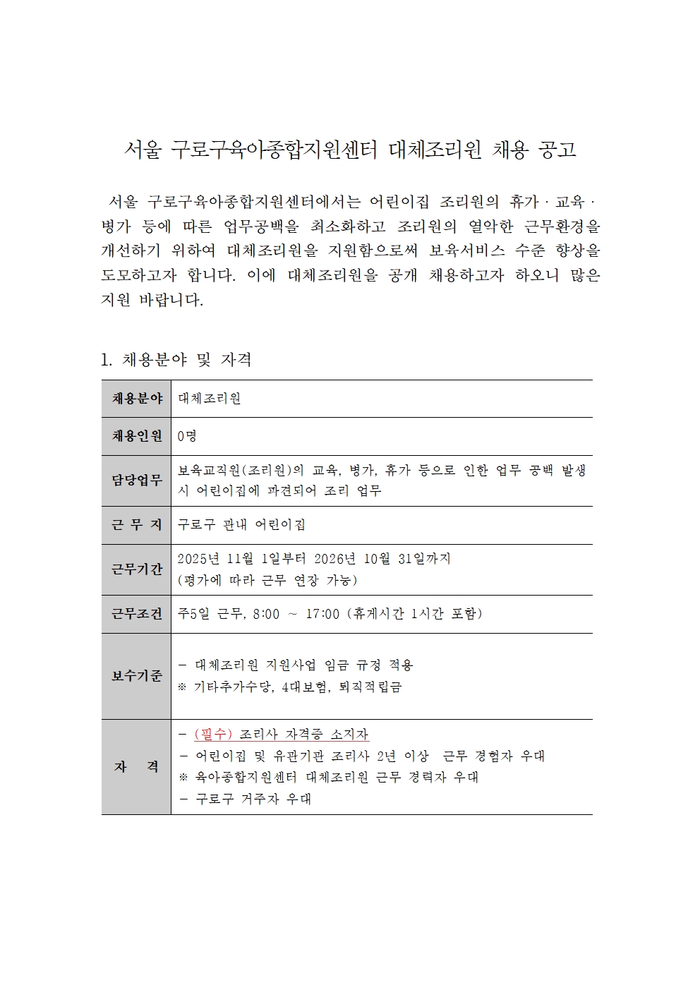 붙임2. 서울 구로구육아종합지원센터 직원(대체조리원) 채용 공고문 1부.pdf