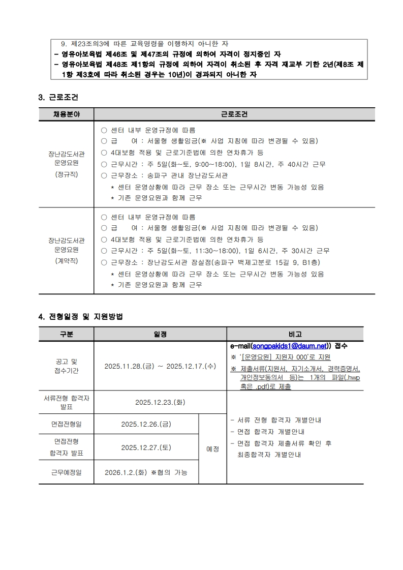[서울 송파구육아종합지원센터] 장난감도서관 운영요원 채용 공고