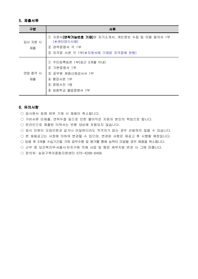[서울 송파구육아종합지원센터] 단기근로자(장난감도서관 세척요원) 채용 공고
