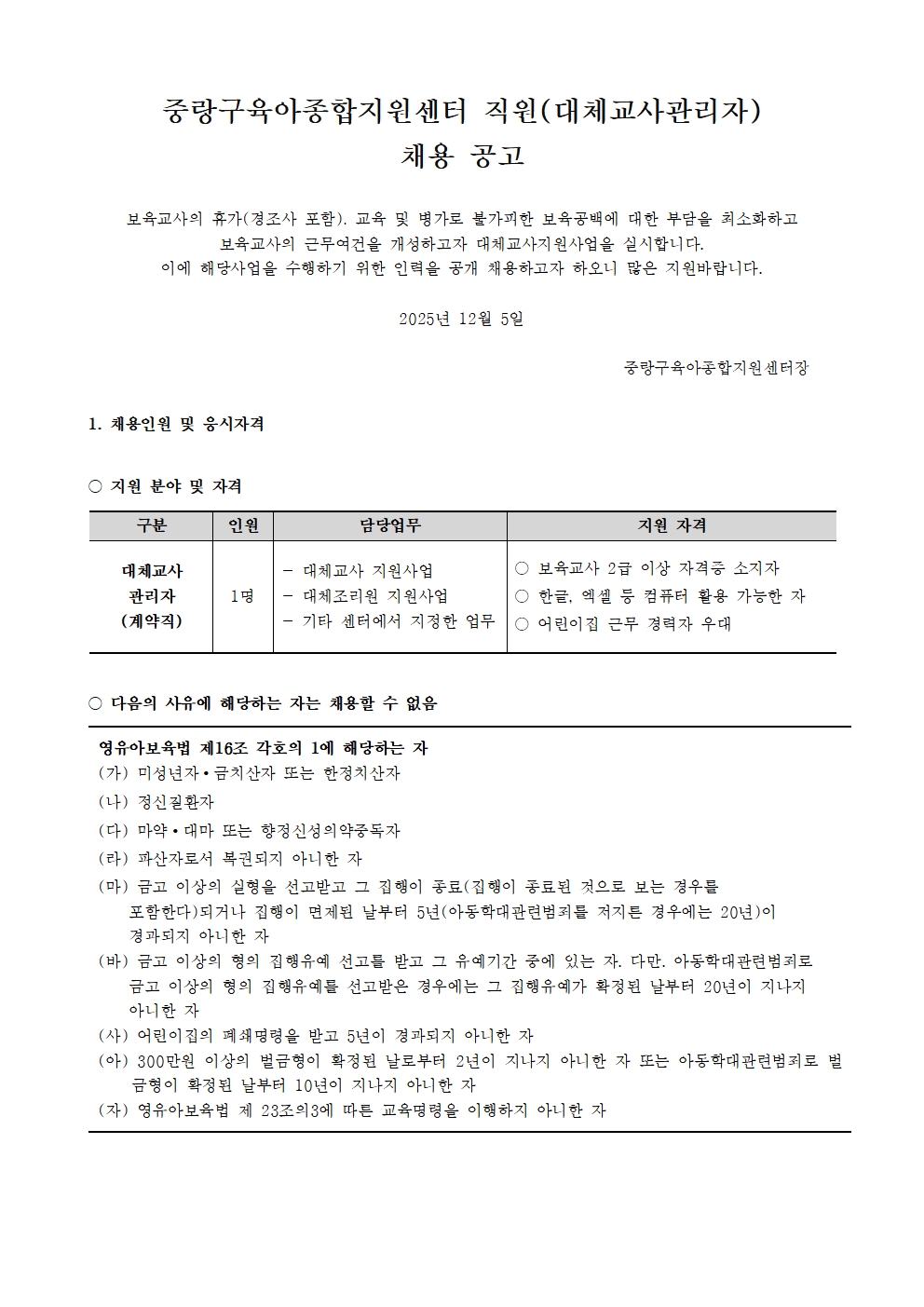 [붙임1] 중랑구육아종합지원센터 직원 채용 공고문- 대체교사관리자.pdf