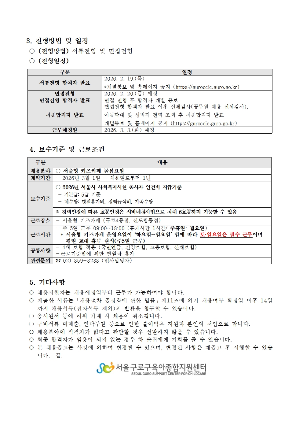 [서울 구로구육아종합지원센터] 서울형 키즈카페 돌봄요원 채용 공고