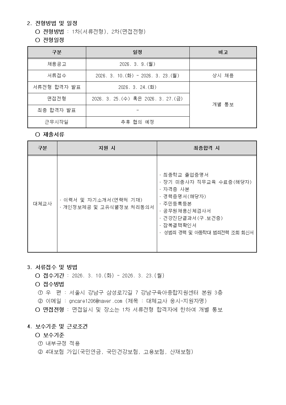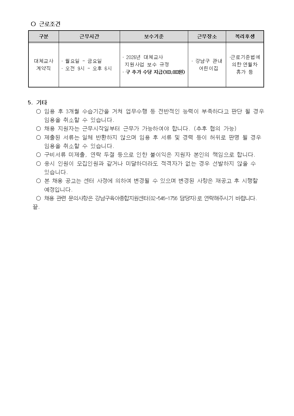 [서울 강남구육아종합지원센터] 2026년 대체교사 상시 채용 공고
