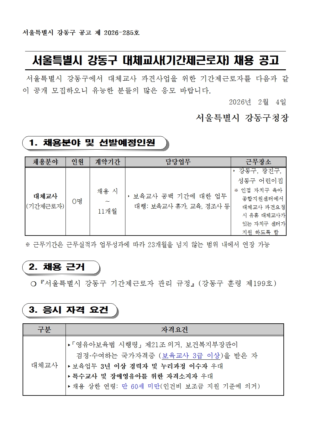 [서울 강남구육아종합지원센터] 운영요원 채용 재공고