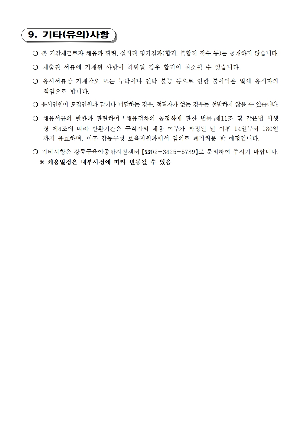 [서울시 강동구청] 대체교사 채용 공고
