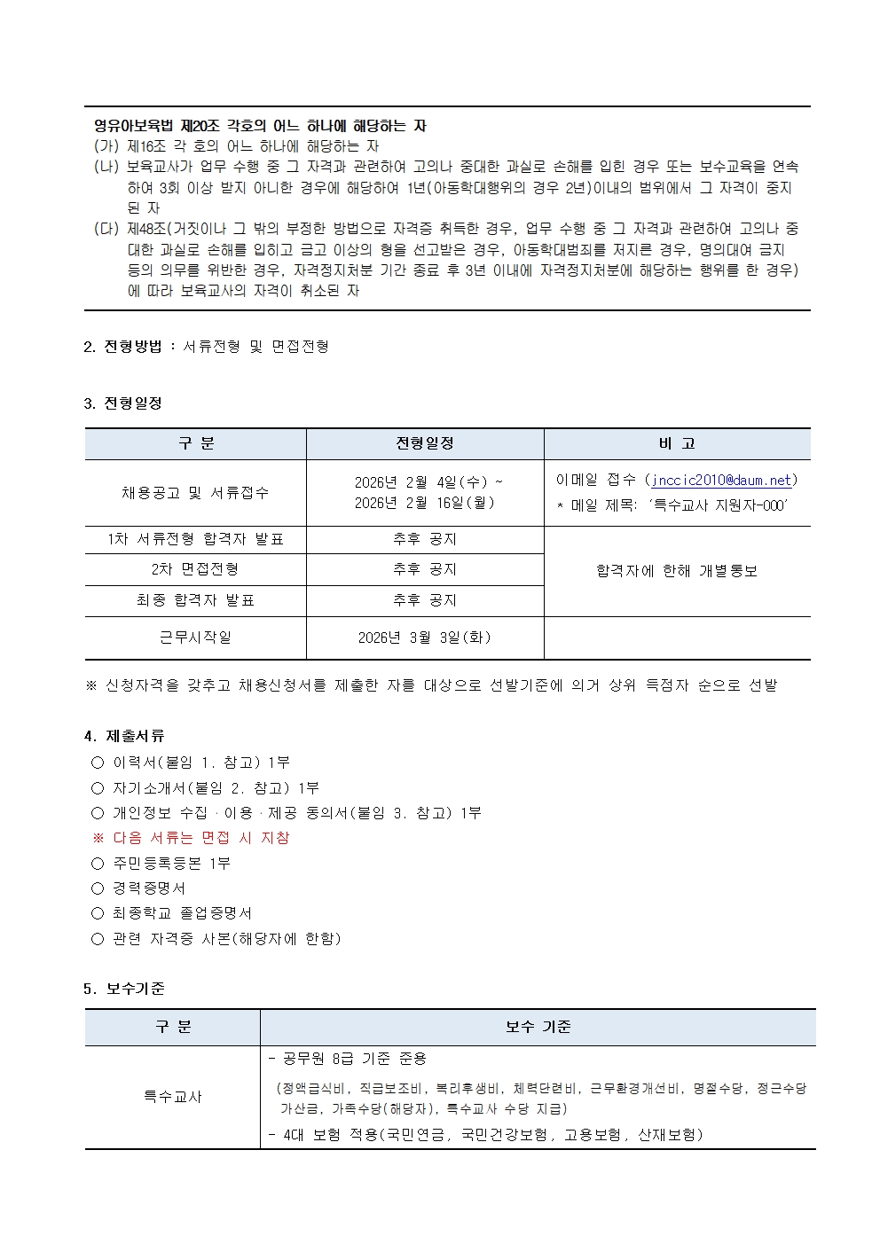 [서울 중랑구육아종합지원센터] 특수교사 채용 공고