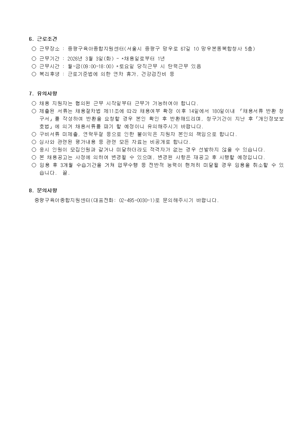 붙임1. 중랑구육아종합지원센터 직원(특수교사) 채용 공고문.pdf