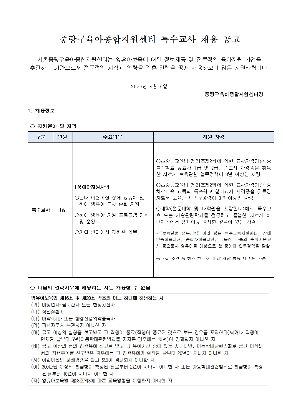 붙임1. 중랑구육아종합지원센터 직원(특수교사) 채용 공고문.pdf