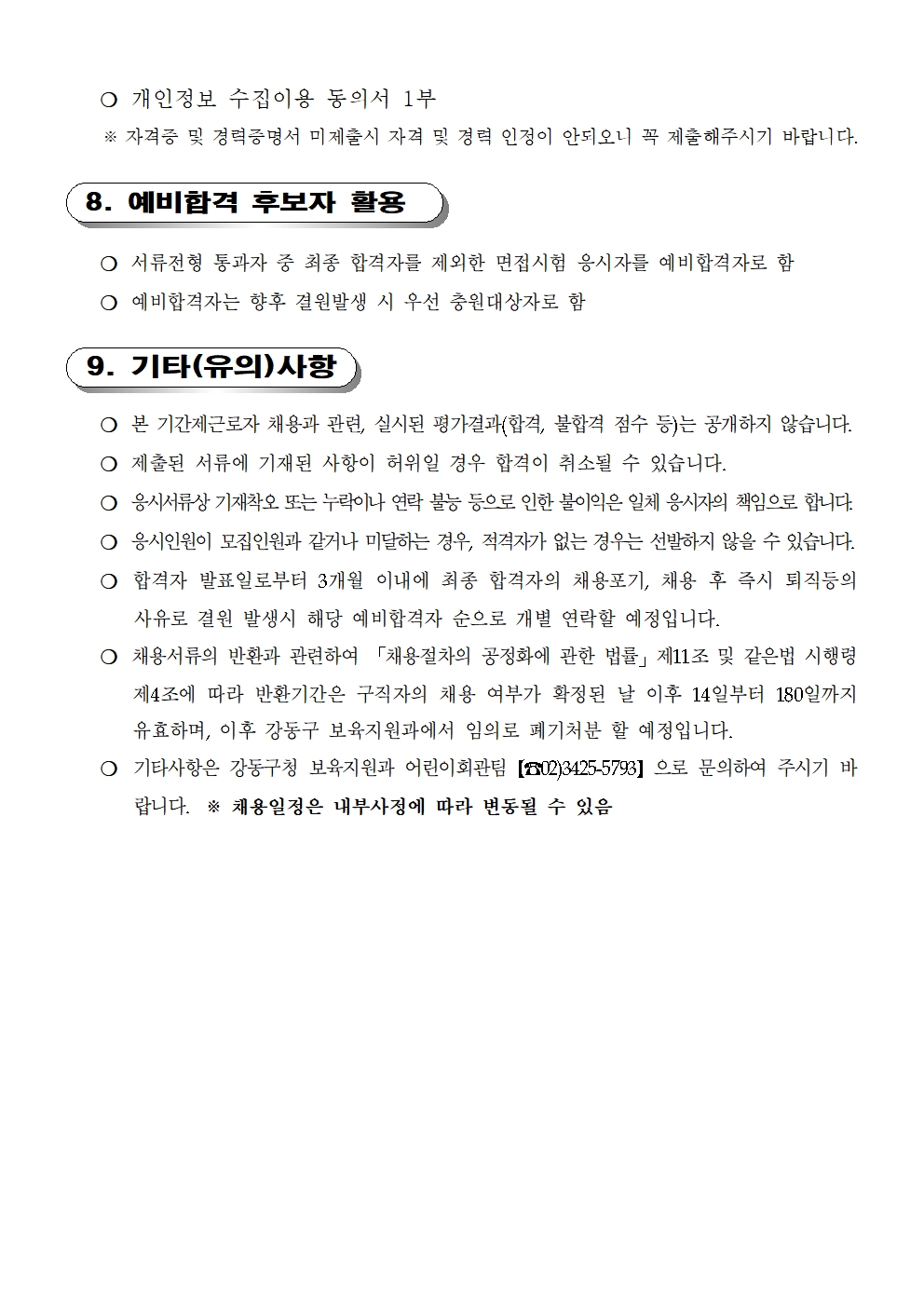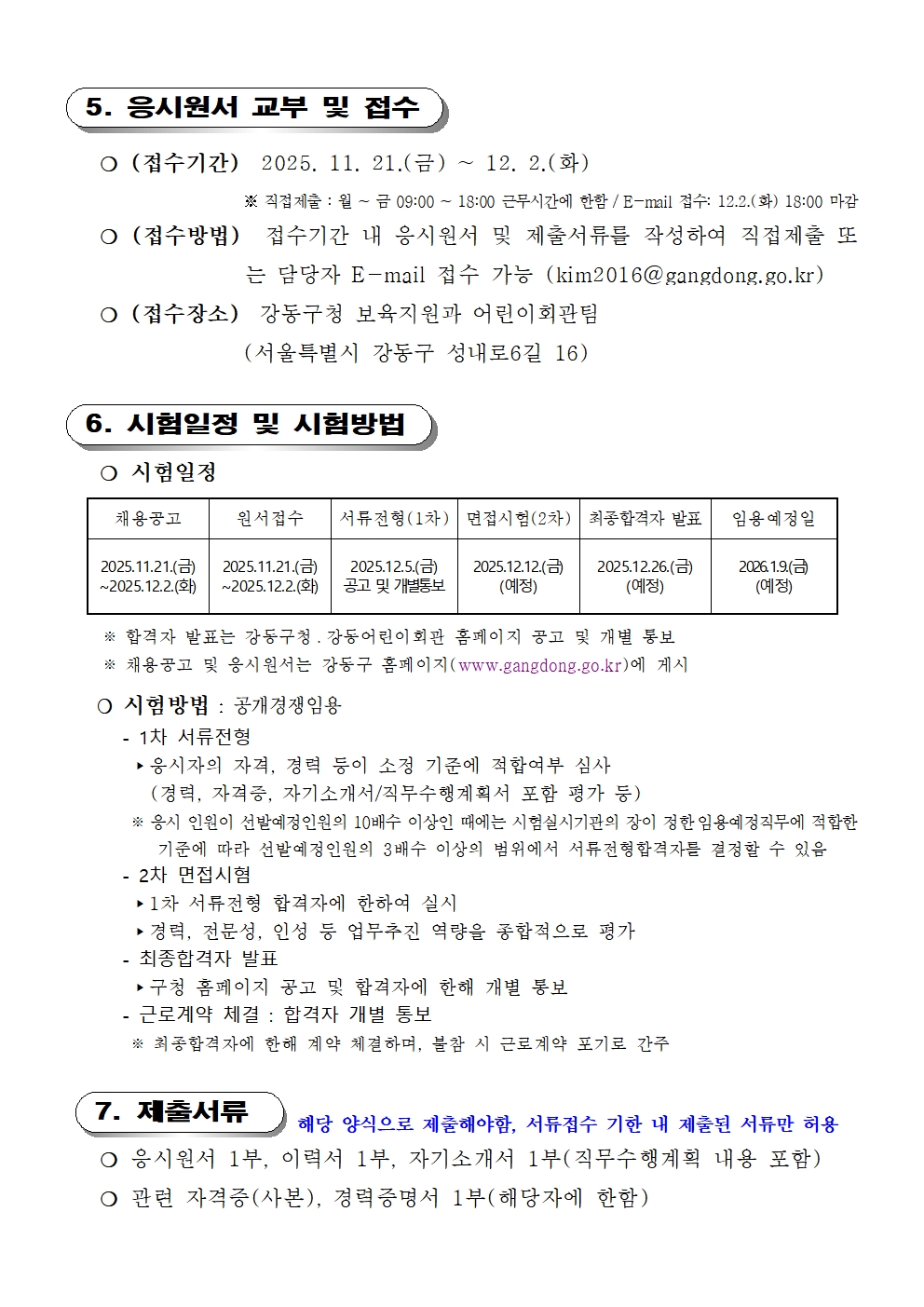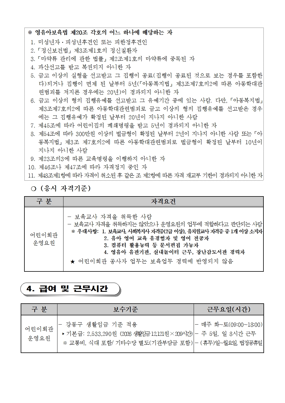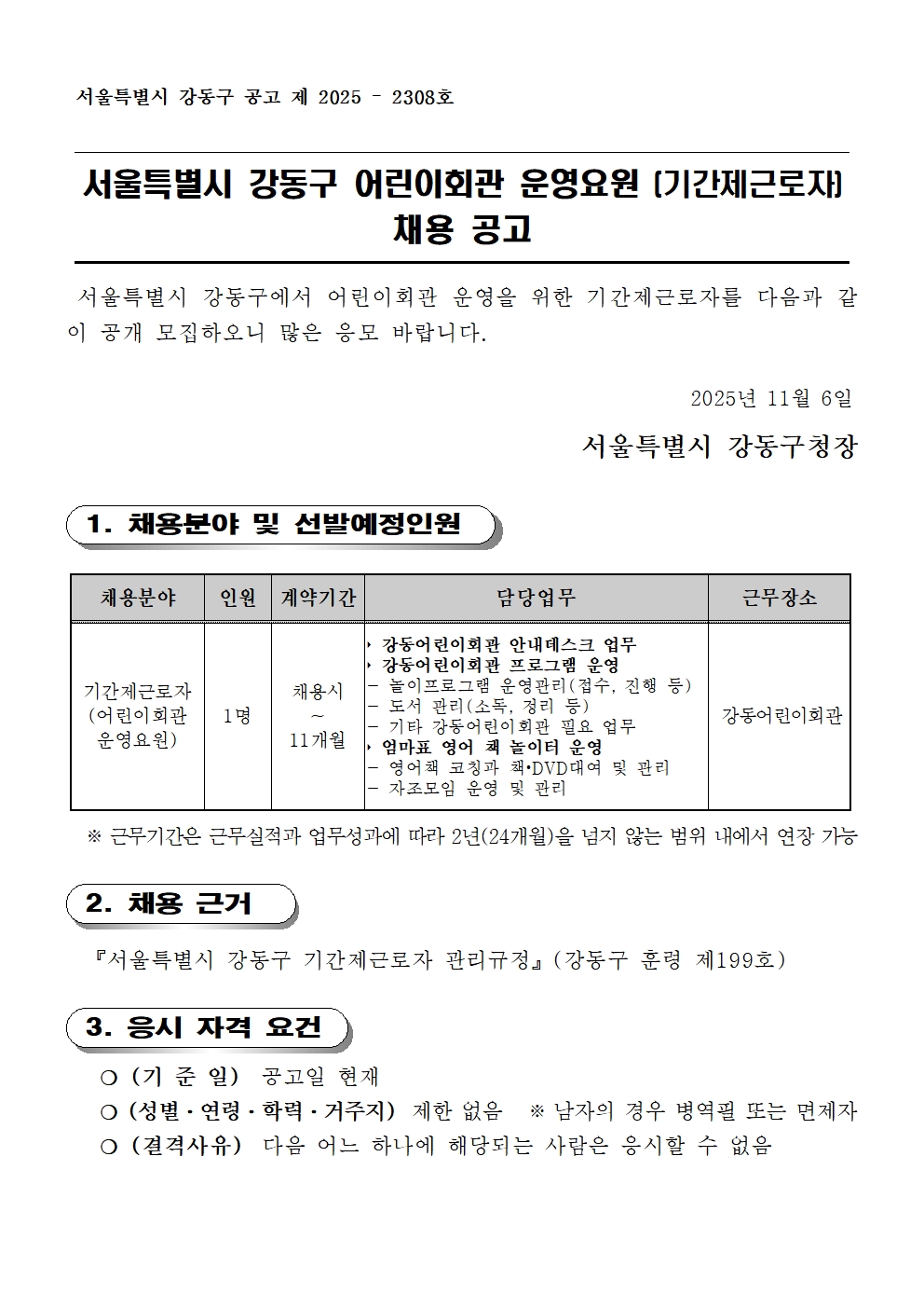 [서울 강동구육아종합지원센터] 어린이회관 운영요원 채용 공고