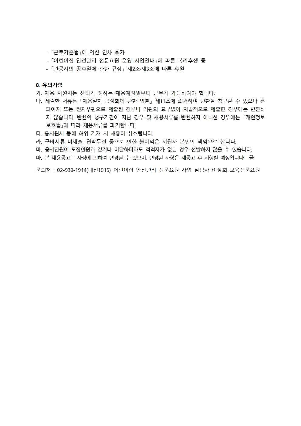 [서울 마포구육아종합지원센터] 어린이집 안전관리 전문요원 채용 공고