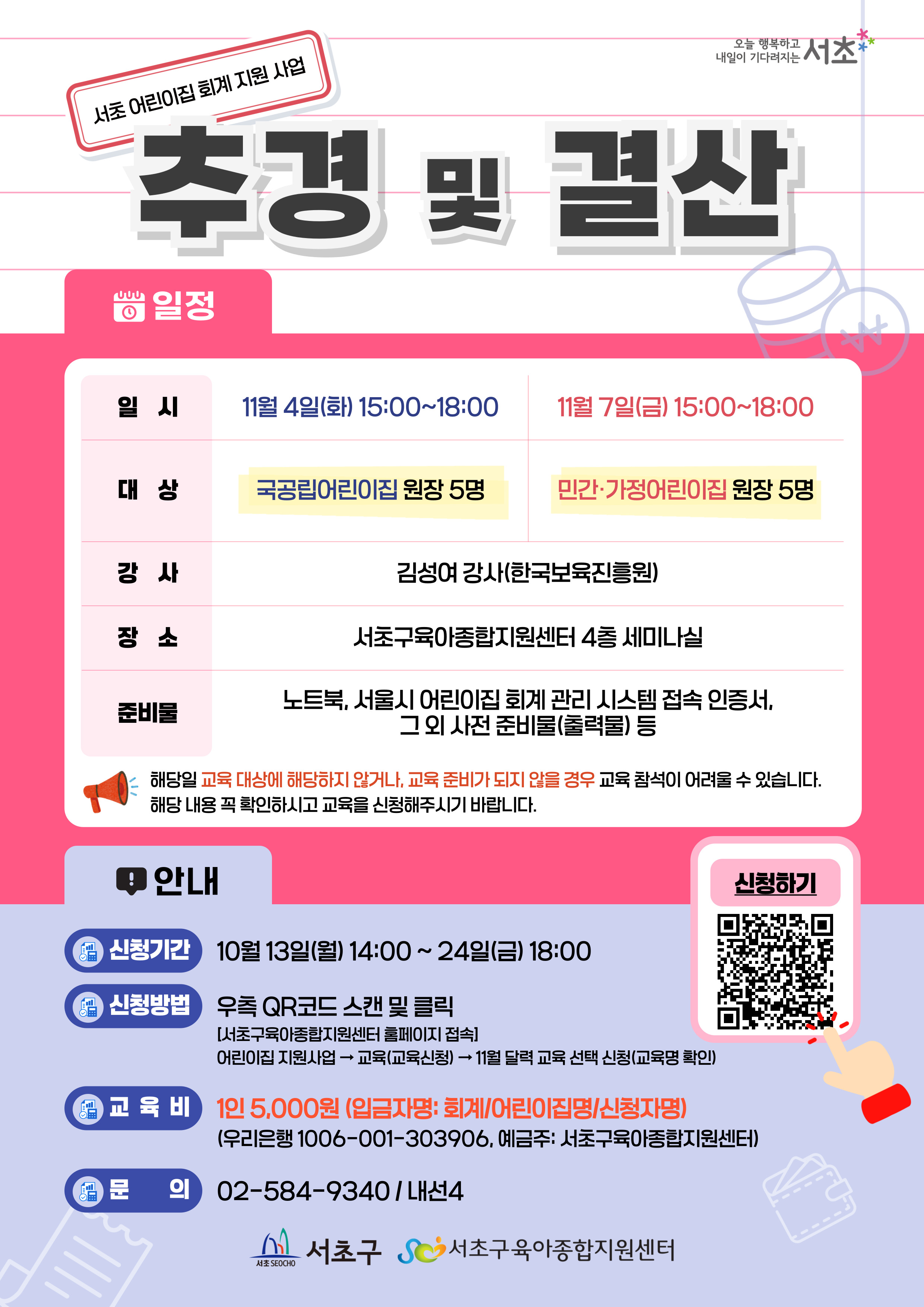 * 입금계좌: 우리은행 1006-001-303906 (예금주: 서초구육아종합지원센터)