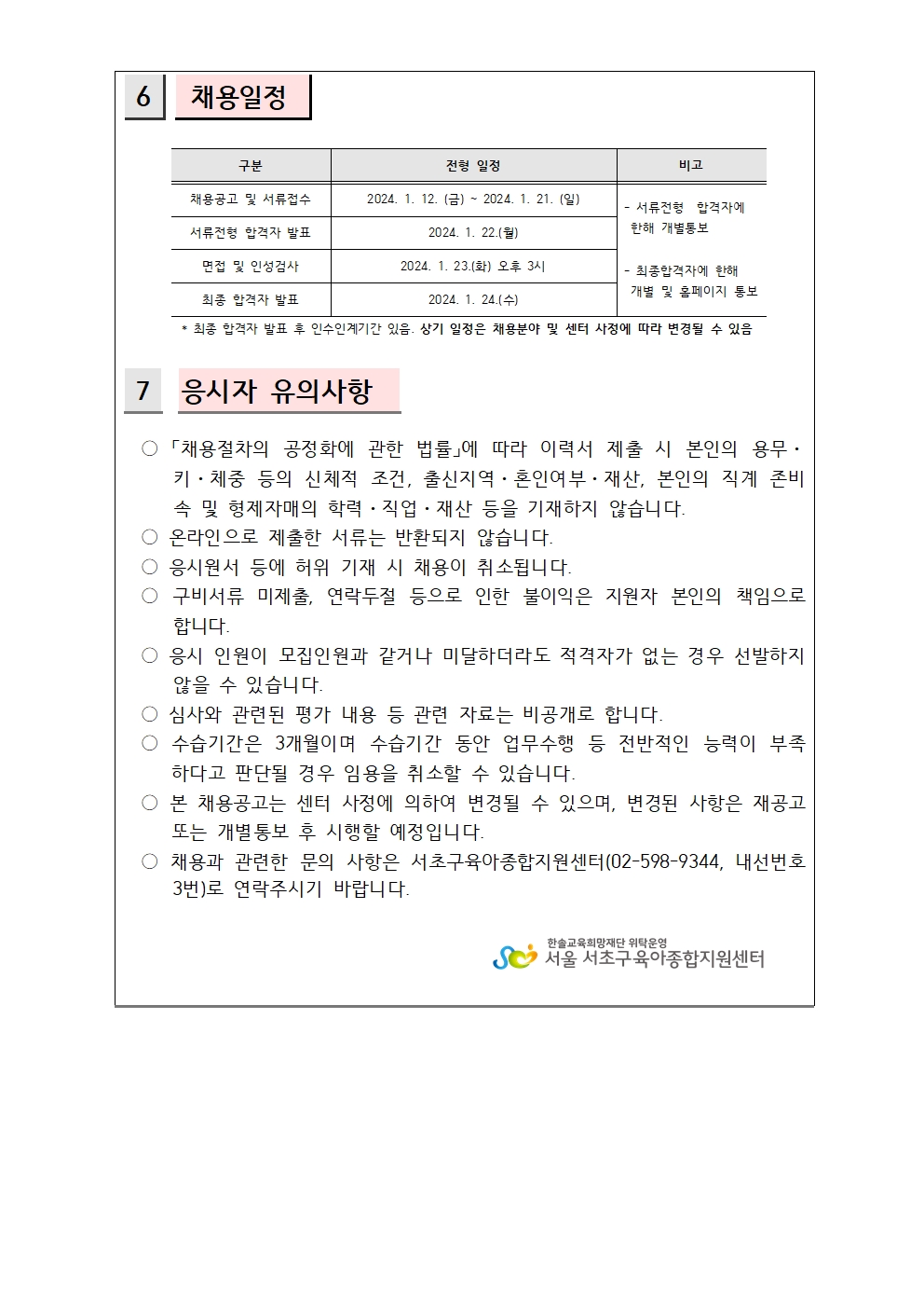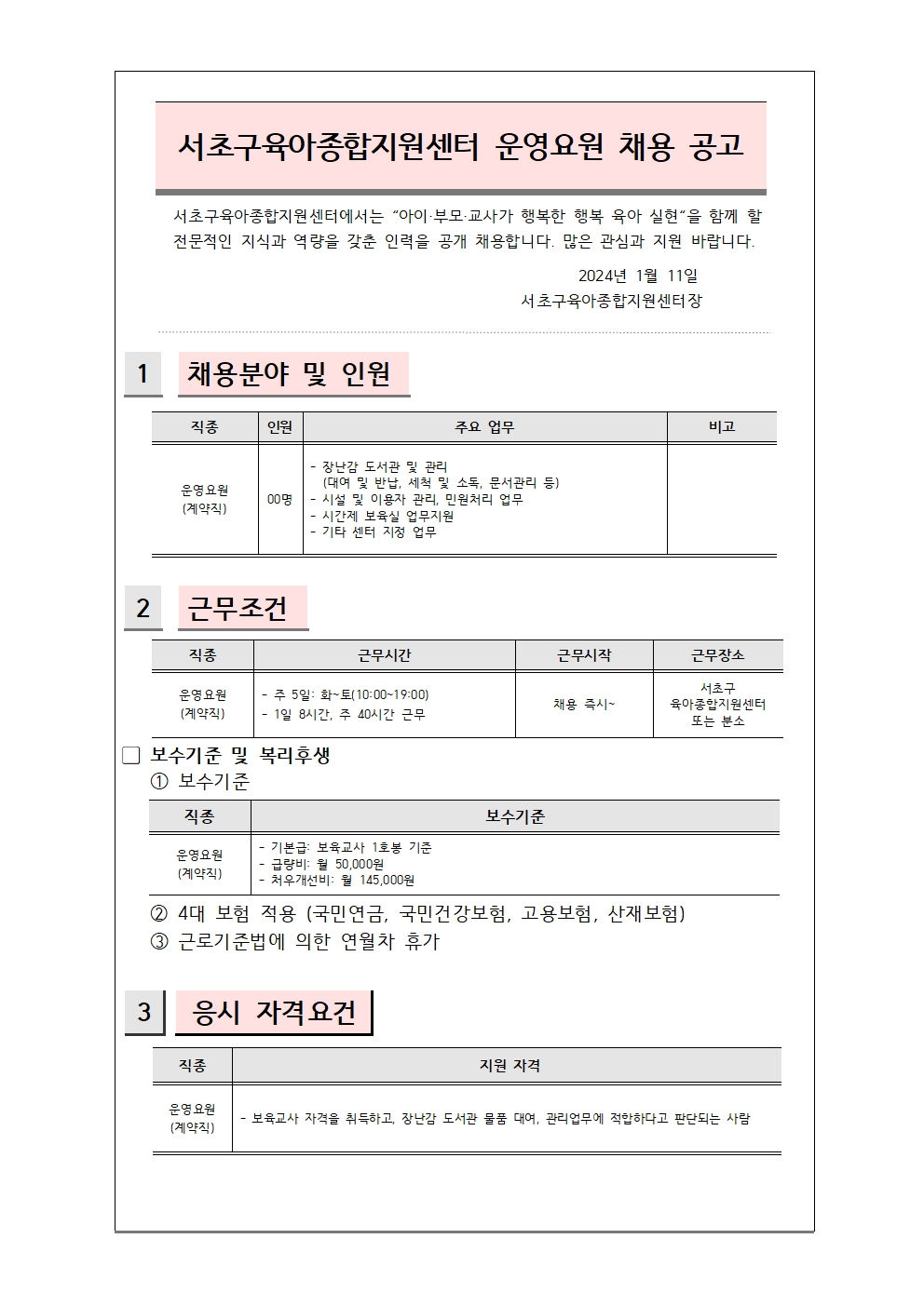 붙임1_0111 서초구육아종합지원센터 직원채용 공고문(운영요원).hwp