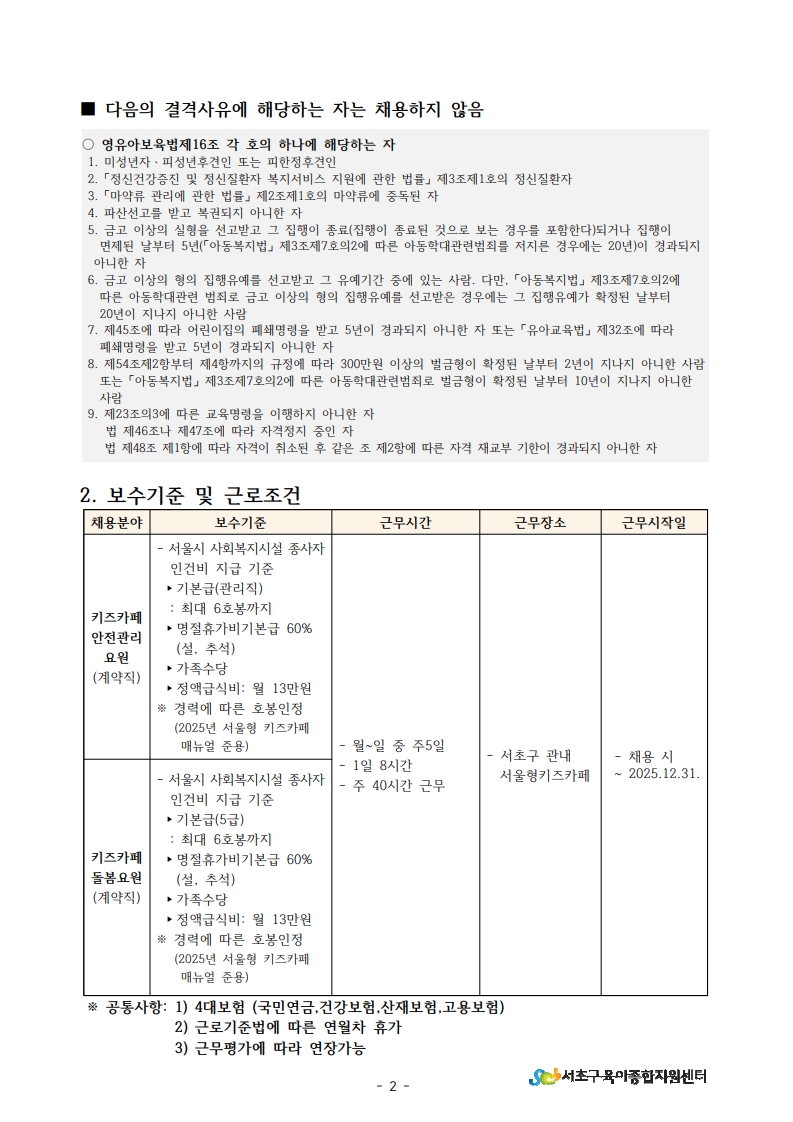 2. 서초구육아종합지원센터 직원채용 공고문(서울형키즈카페-안전관리, 돌봄요원).pdf