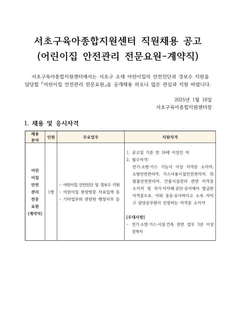 1. 서초구육아종합지원센터 직원채용 공고문(어린이집 안전관리 전문요원).pdf