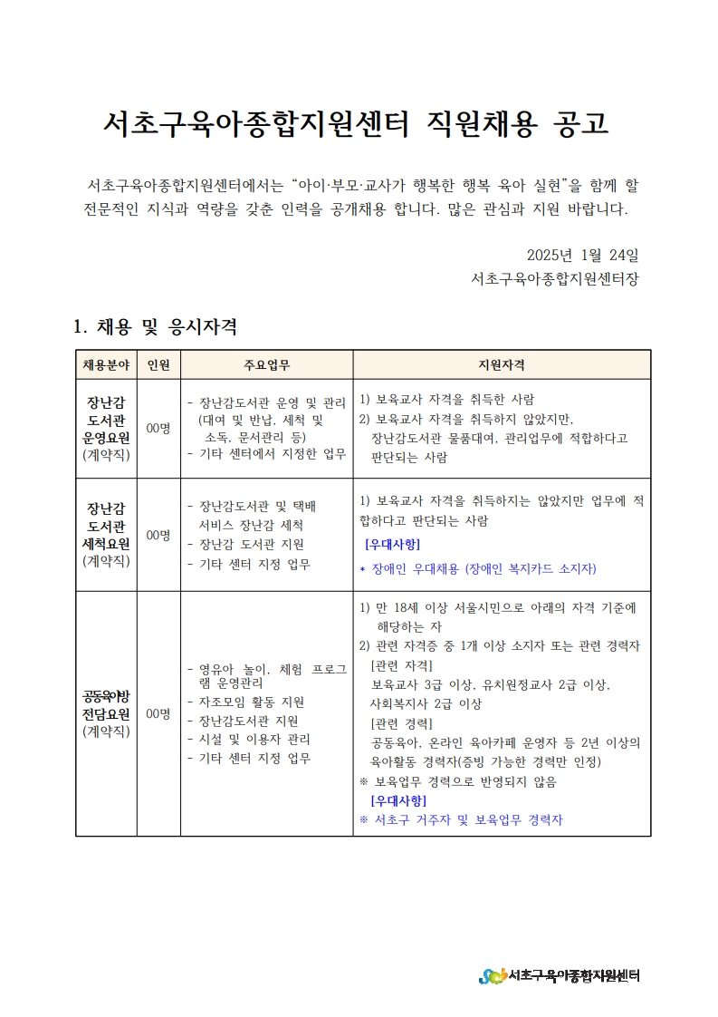 • 1. 서초구육아종합지원센터 직원채용 공고문(장난감도서관운영요원,세척요원,공동육아방).pdf