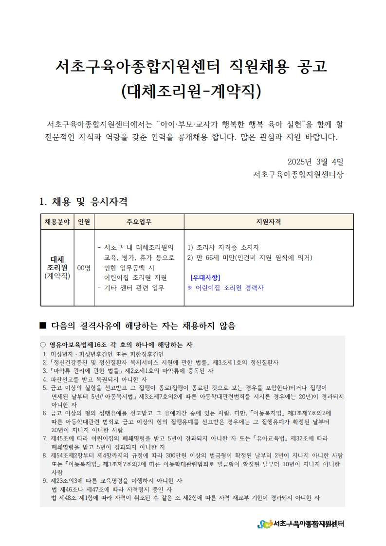 1. 서초구육아종합지원센터 직원채용 공고문(대체조리원).pdf