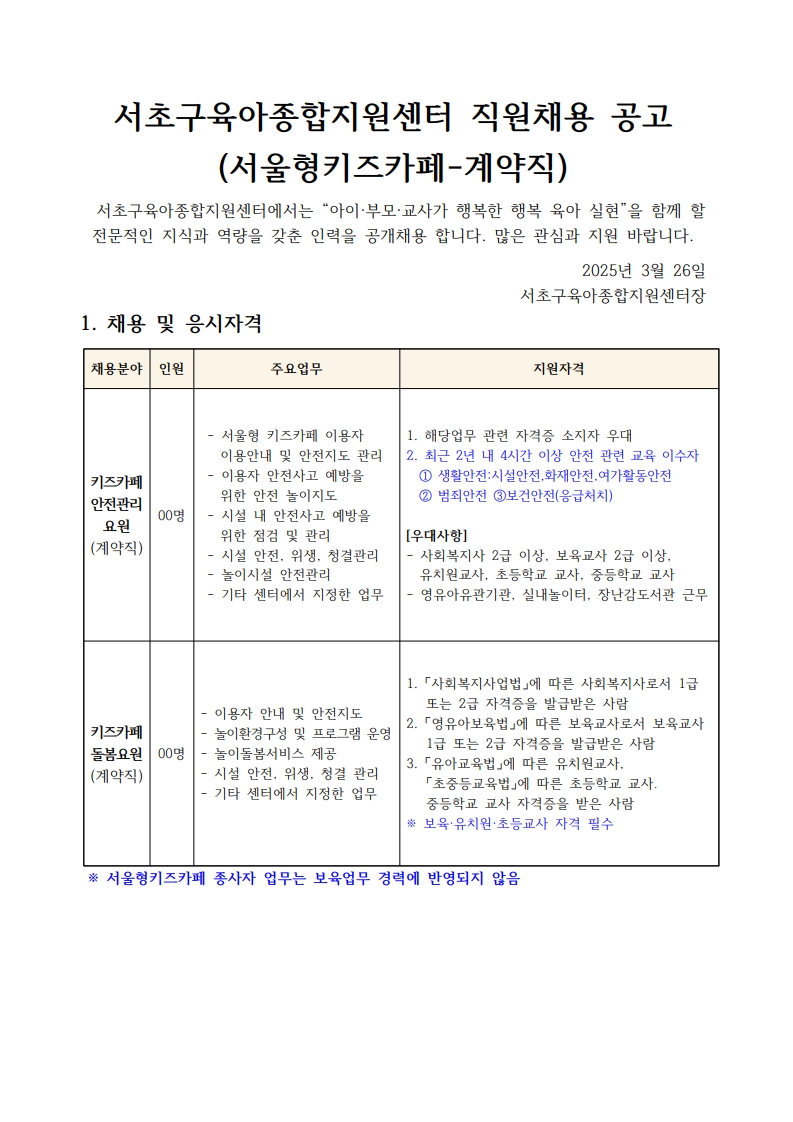 3. 서초구육아종합지원센터 직원채용 공고문(서울형키즈카페-돌봄, 안전관리요원).pdf
