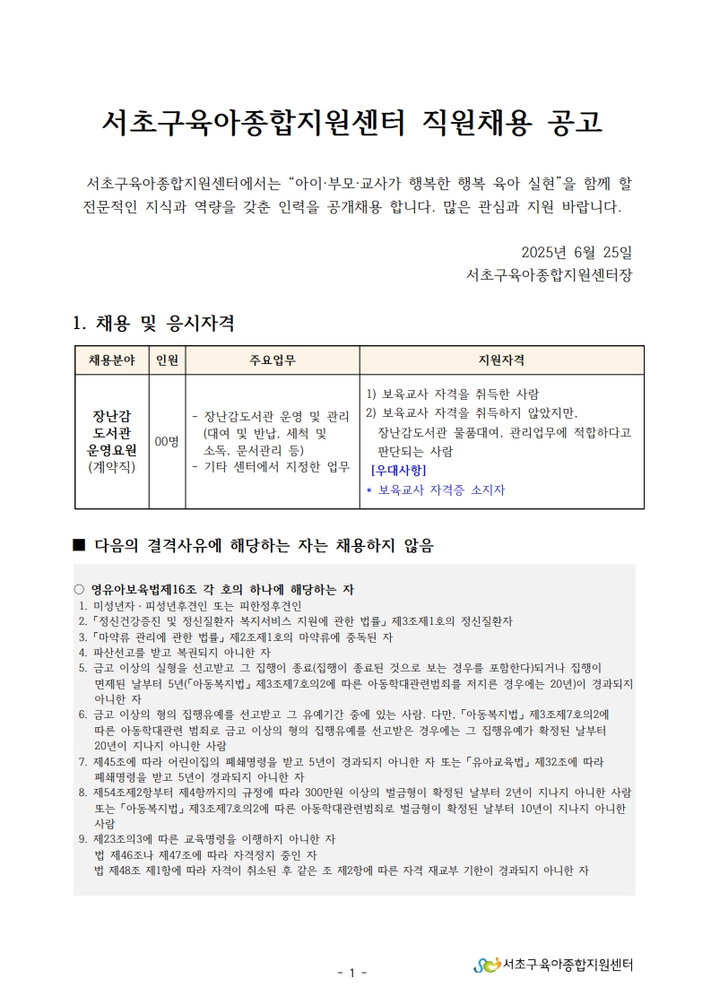 1. 서초구육아종합지원센터 직원채용 공고문(장난감도서관운영요원).pdf