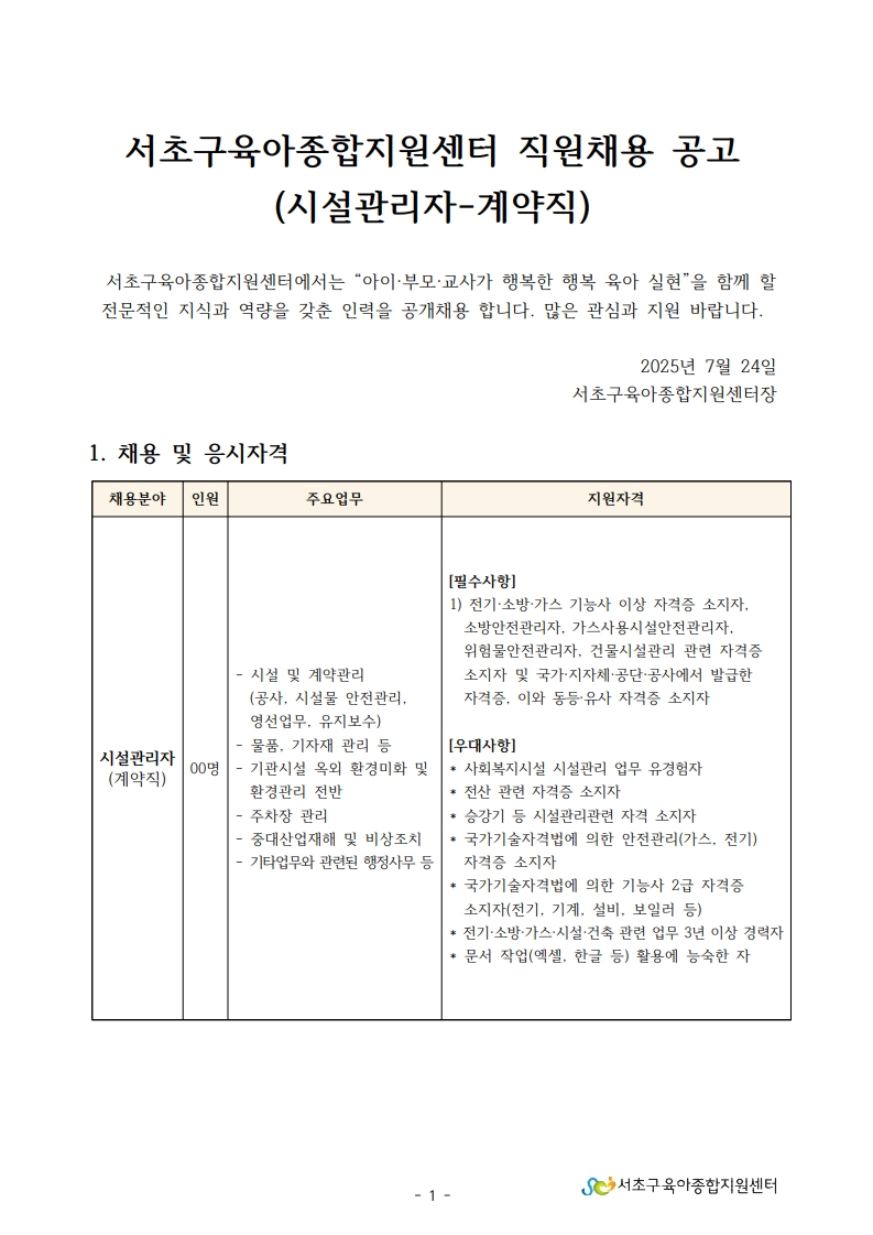 3. 서초구육아종합지원센터 직원채용 공고문(시설관리자).pdf