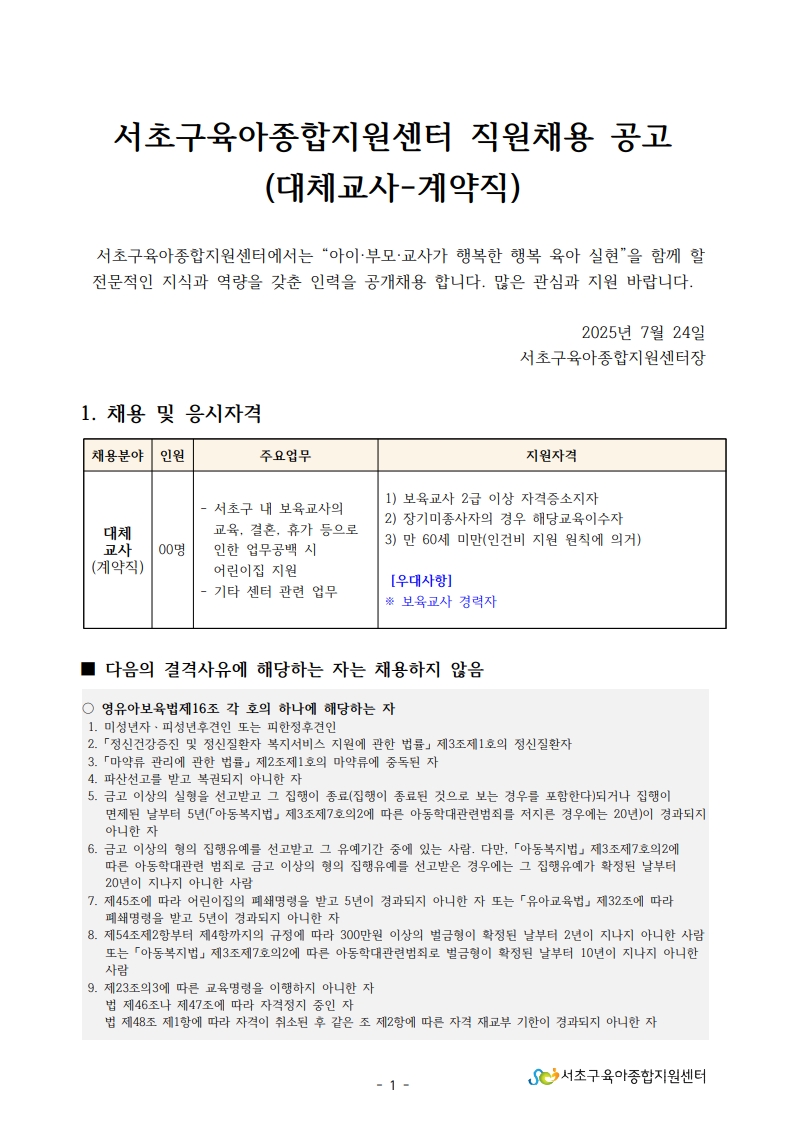 4. 서초구육아종합지원센터 직원채용 공고문(대체교사).pdf