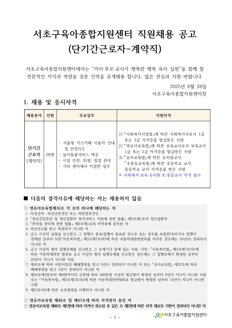 4. 서초구육아종합지원센터 직원채용 공고문(단기간근로자).pdf