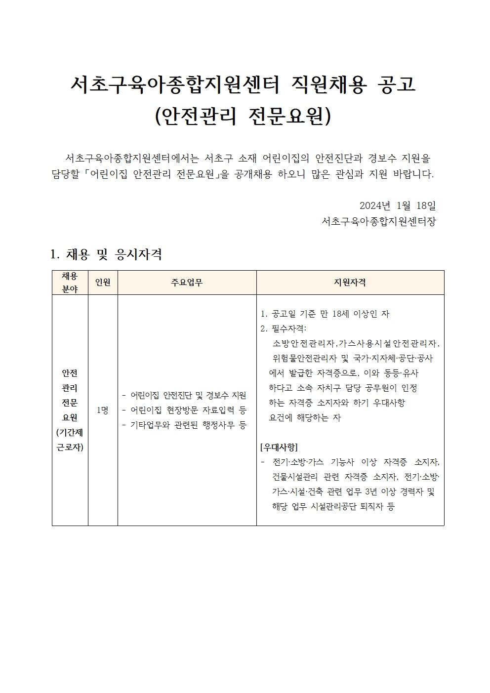 서초구육아종합지원센터 직원채용 공고문(안전관리전문).hwp