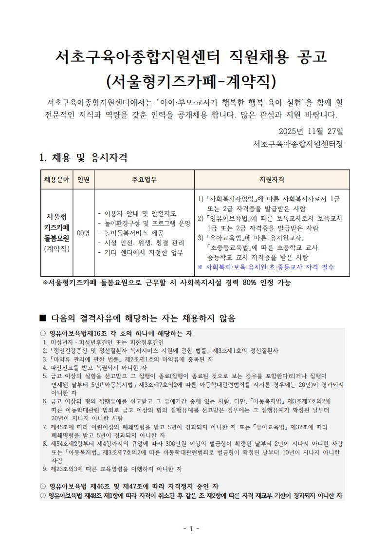 2. 서초구육아종합지원센터 직원채용 공고문(서울형키즈카페-돌봄요원).pdf