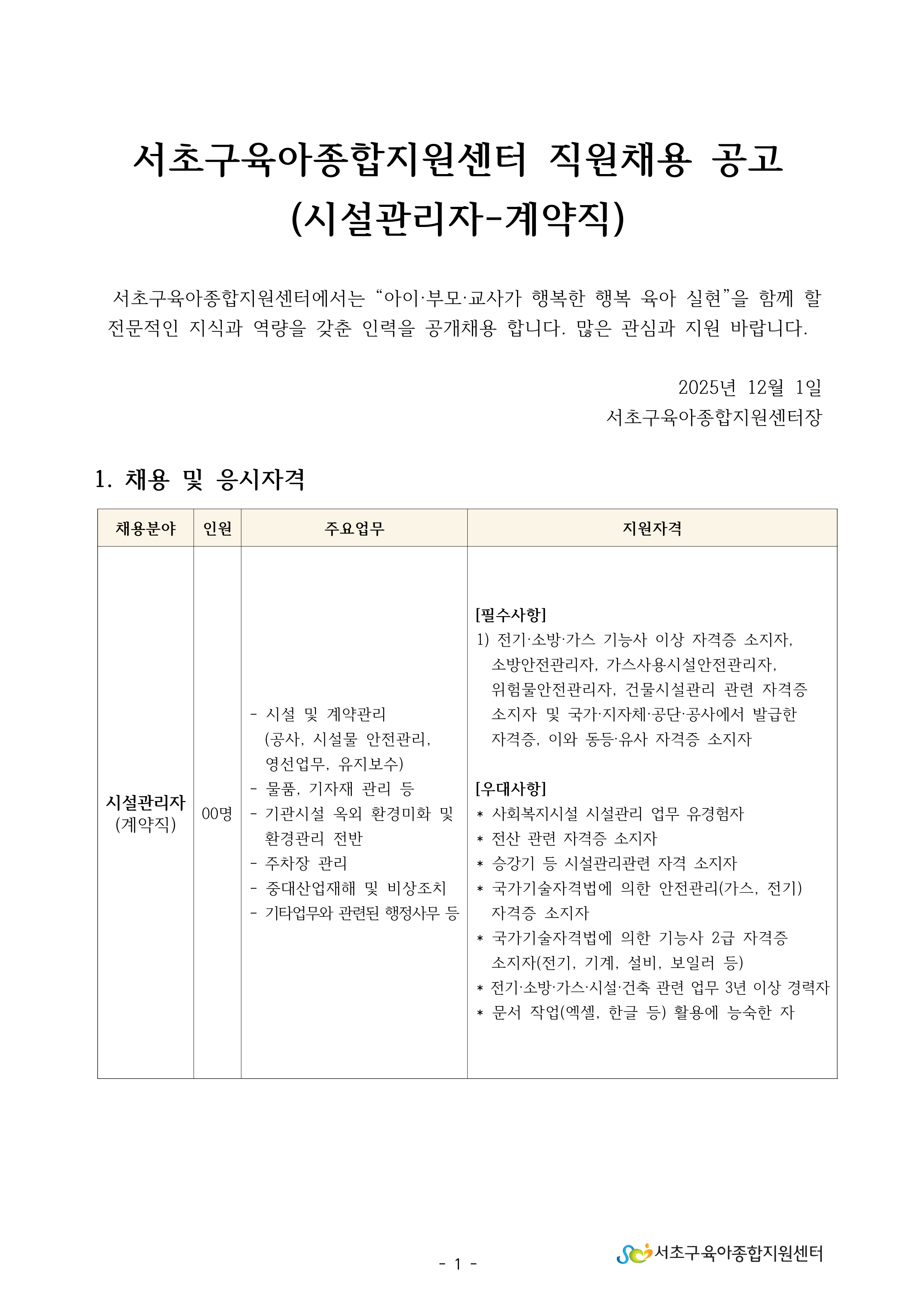 1. 서초구육아종합지원센터 직원채용 공고문(시설관리자).pdf