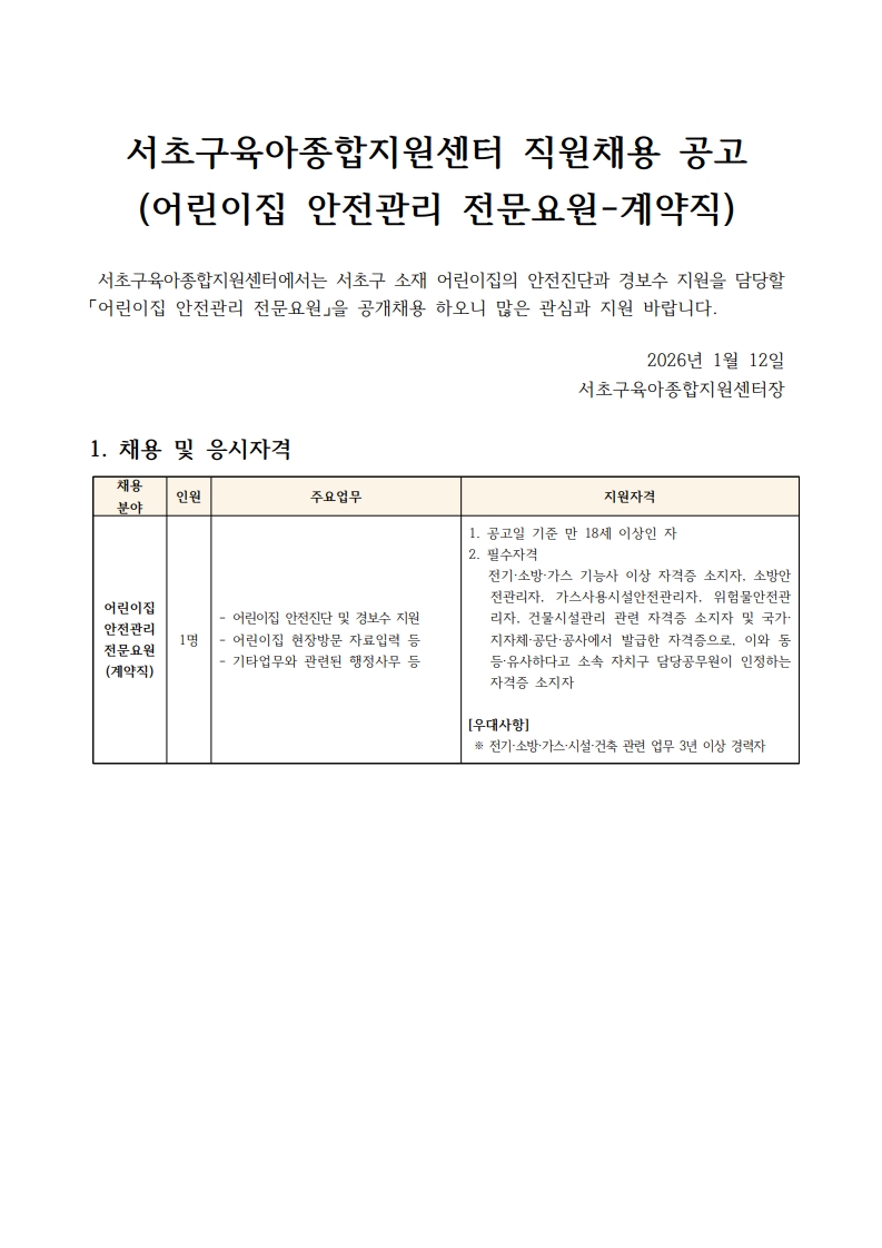 1. 서초구육아종합지원센터 직원채용 공고문(어린이집안전관리전문요원).pdf