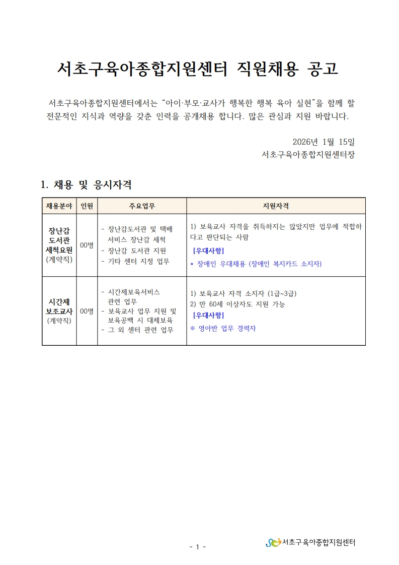1. 서초구육아종합지원센터 직원채용 공고문(세척요원,시간제보조교사).pdf
