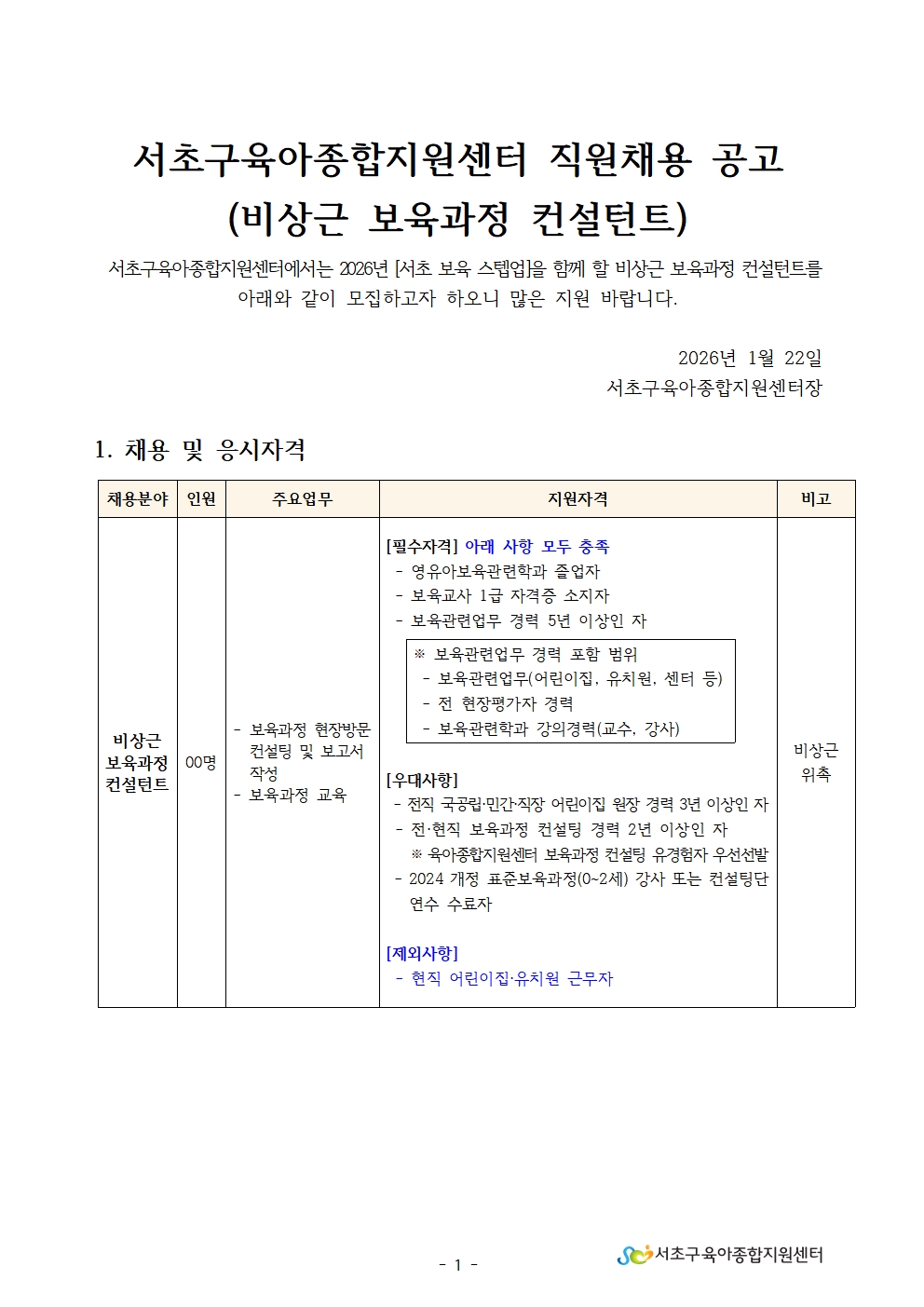서초구육아종합지원센터 직원채용 공고문(비상근 보육과정 컨설턴트).pdf