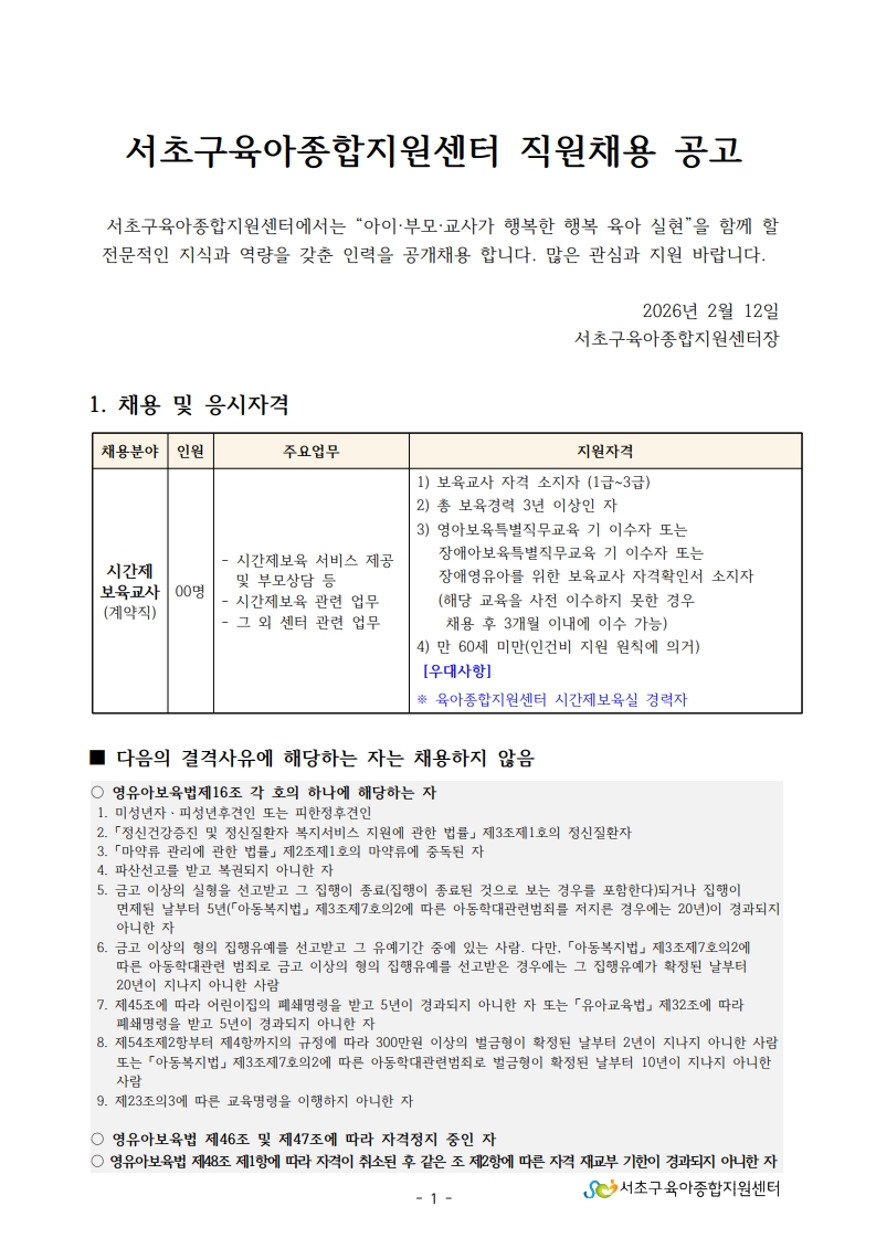 1. 서초구육아종합지원센터 직원채용 공고문(시간제보육교사).pdf