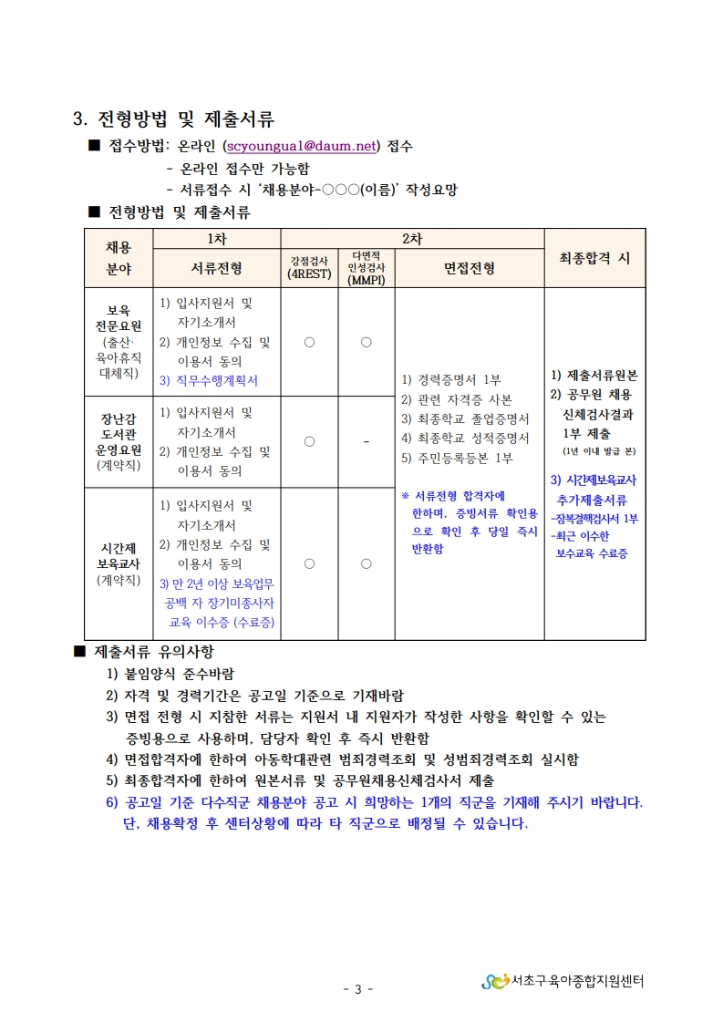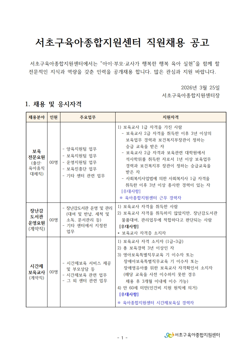 1. 서초구육아종합지원센터 직원채용 공고문(보육전문요원,운영요원,시간제보육교사).pdf