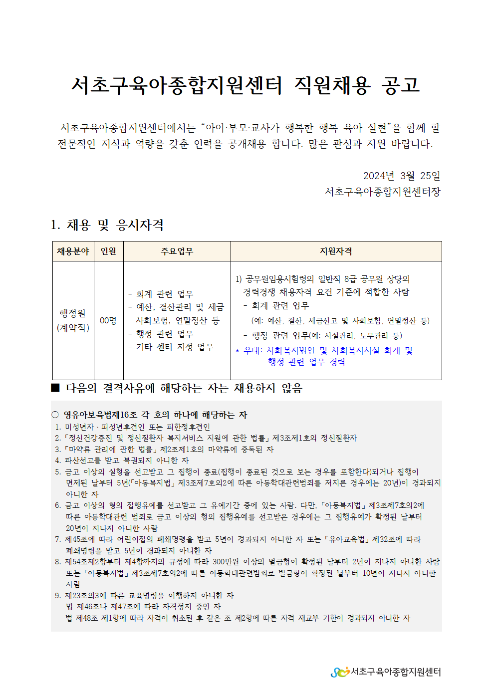 1. 서초구육아종합지원센터 직원채용 공고문(행정원).pdf