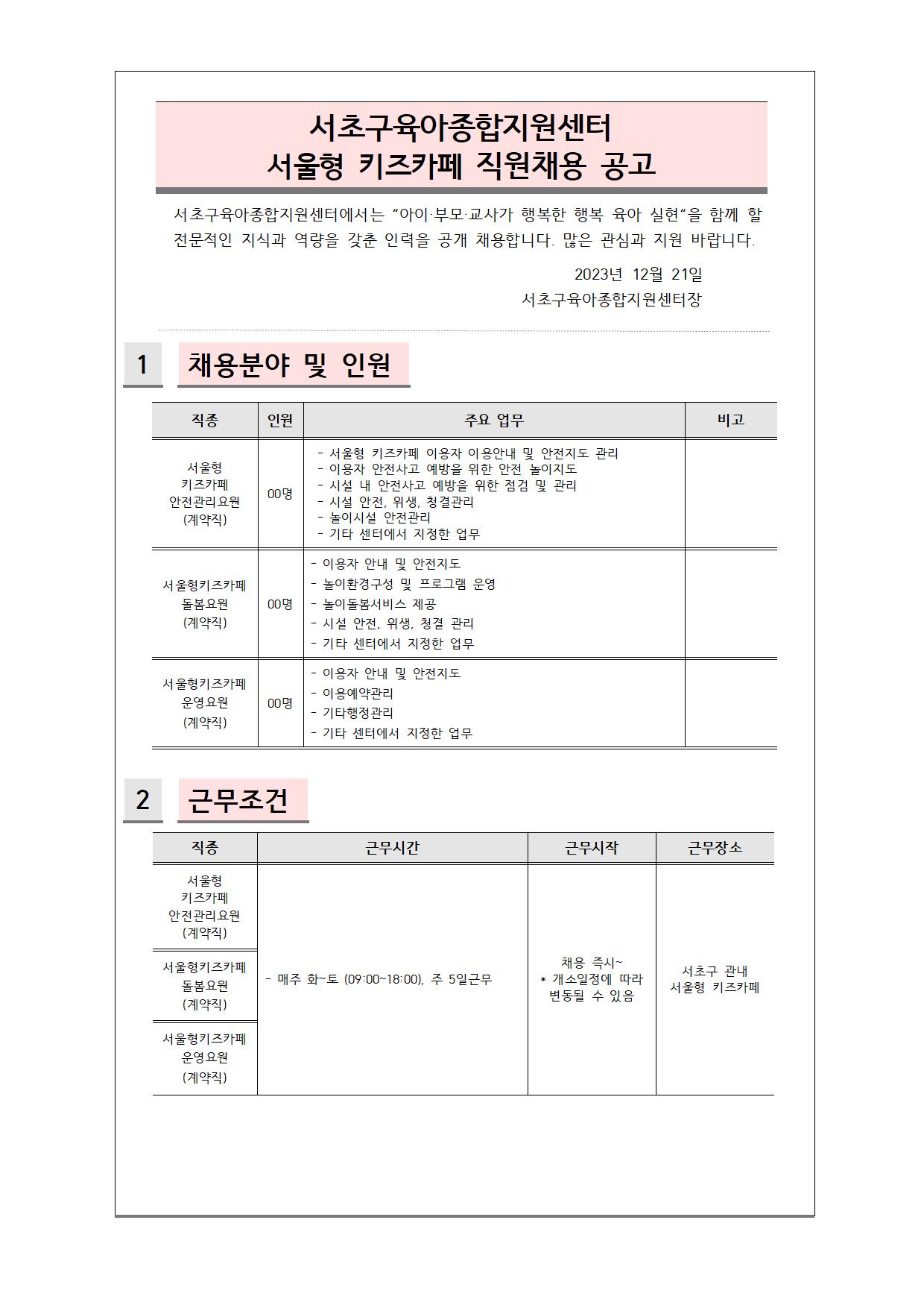 붙임1_1222 서초구육아종합지원센터 직원채용 공고문(서울형키즈카페).hwp
