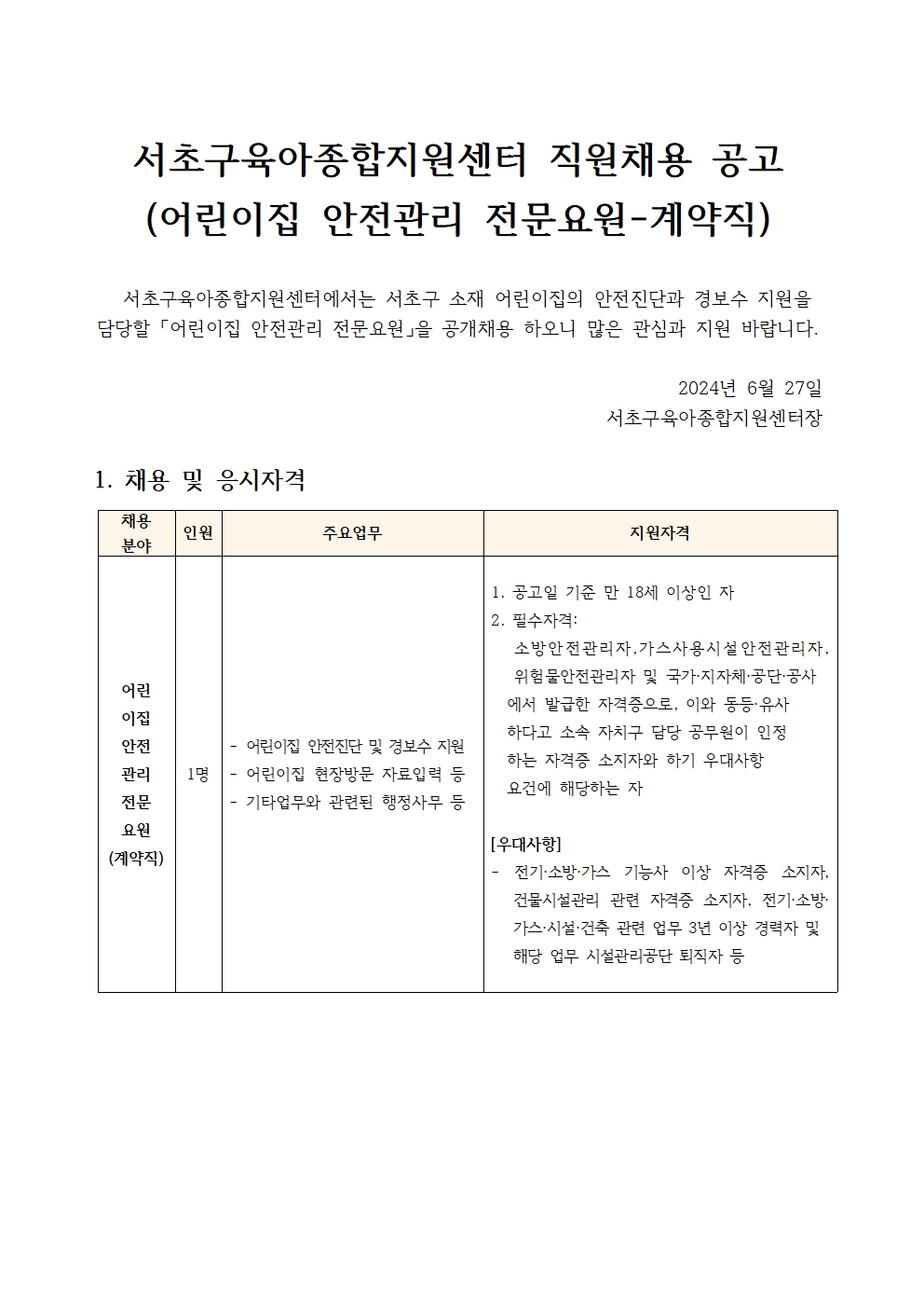 1. 서초구육아종합지원센터 직원채용 공고문(어린이집안전관리전문요원).pdf