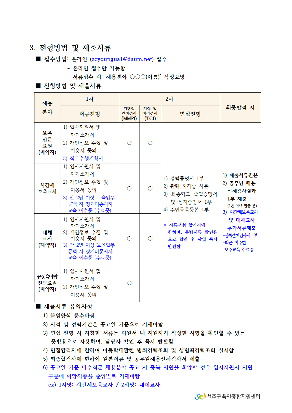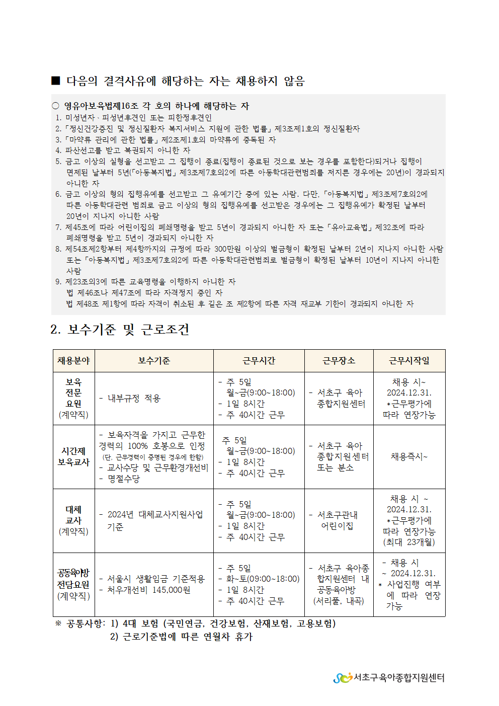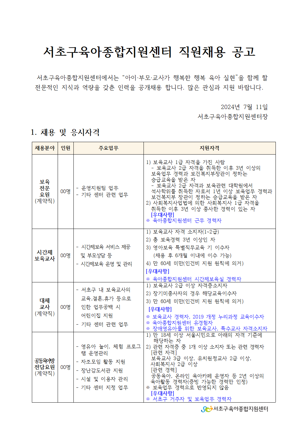 1. 서초구육아종합지원센터 직원채용 공고문(보육전문요원,대체교사,시간제보육교사,공동육아방).pdf