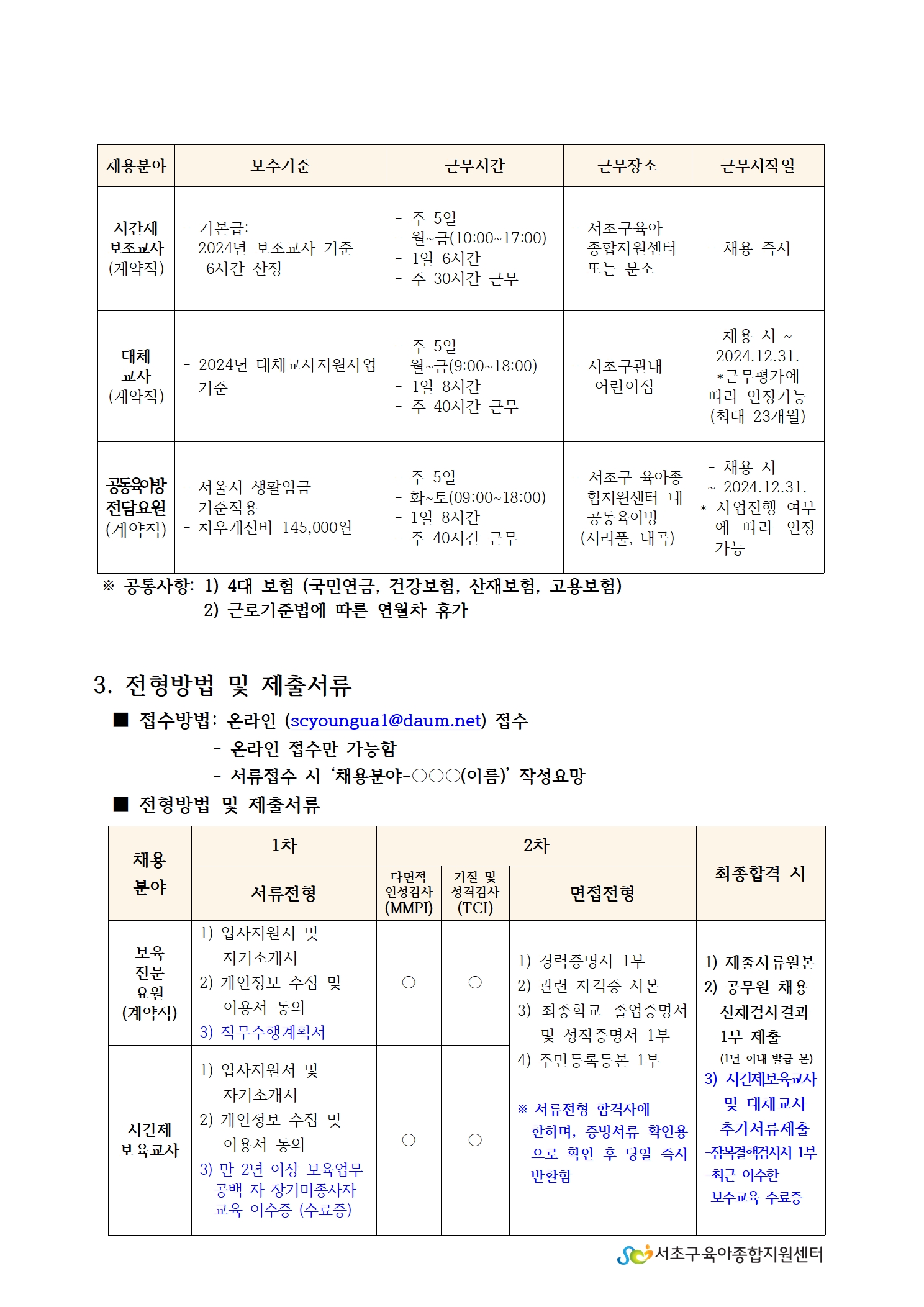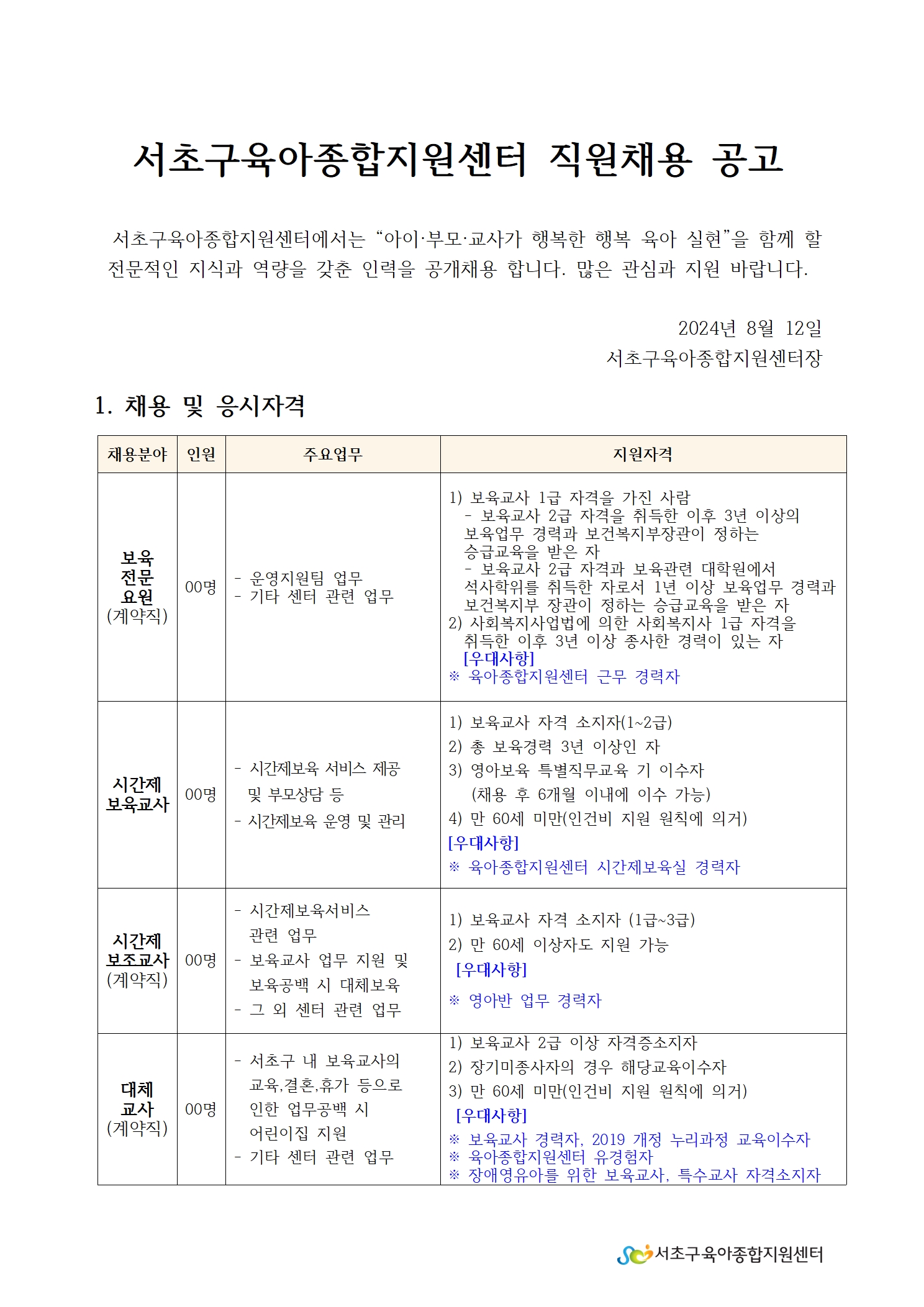 1. 서초구육아종합지원센터 직원채용 공고문(보육전문요원,대체교사,시간제보육교사,시간제보조교사,공동육아방).pdf